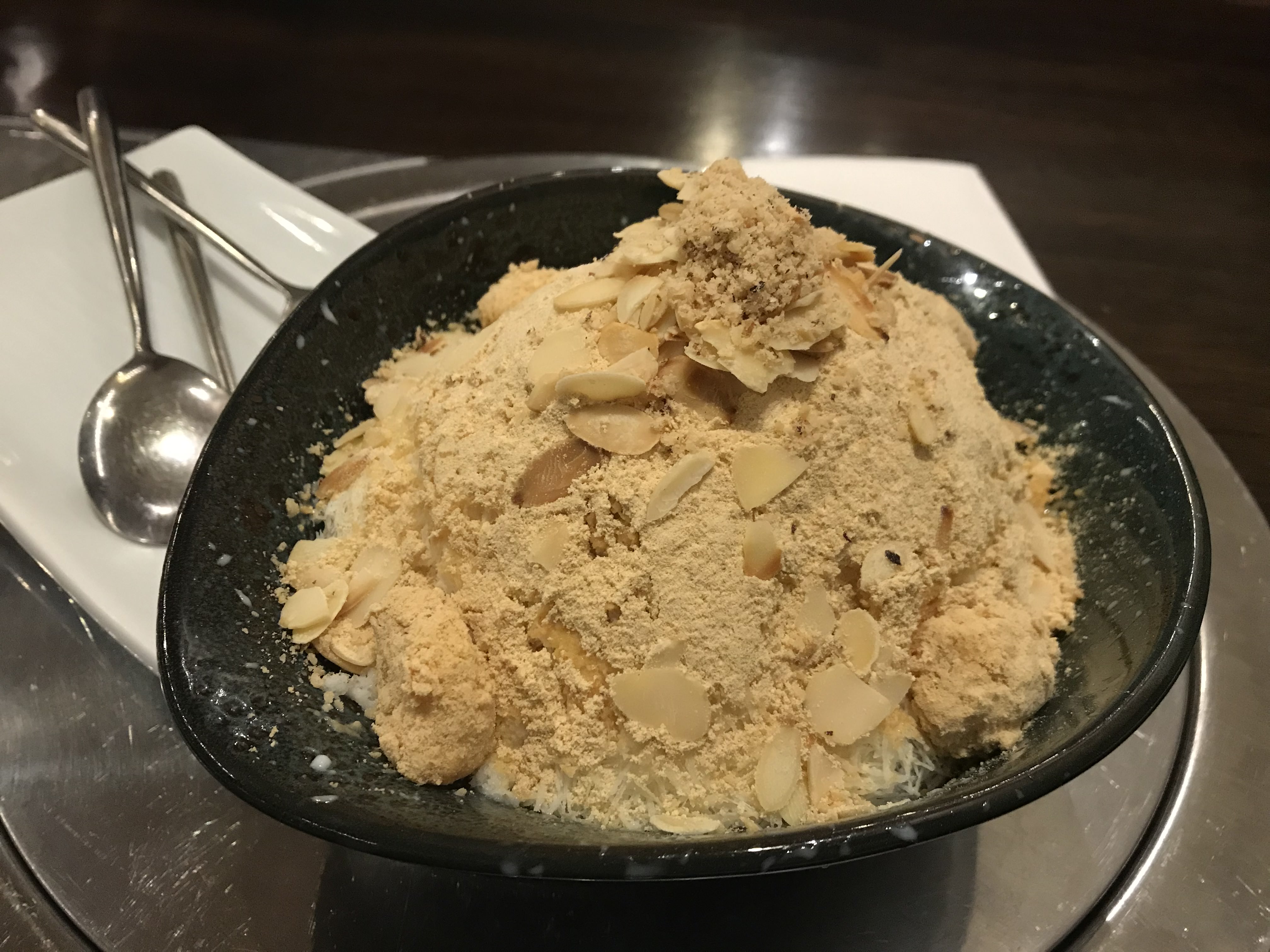 사람들이 맨날 맛있다 맛있다 하는 빙수를 첨으로 시켜봤는데 진짜 맛있었다. 개인적으로 설빙 콩가루 빙수도 그다지 안 좋아했는데 한미 콩가루 빙수는 정말 맛있었다. 인절미를 오랜만에 먹어서 그런가? 적당히 달달한 게 존맛!! 이건 담에 가면 또 시킨다.