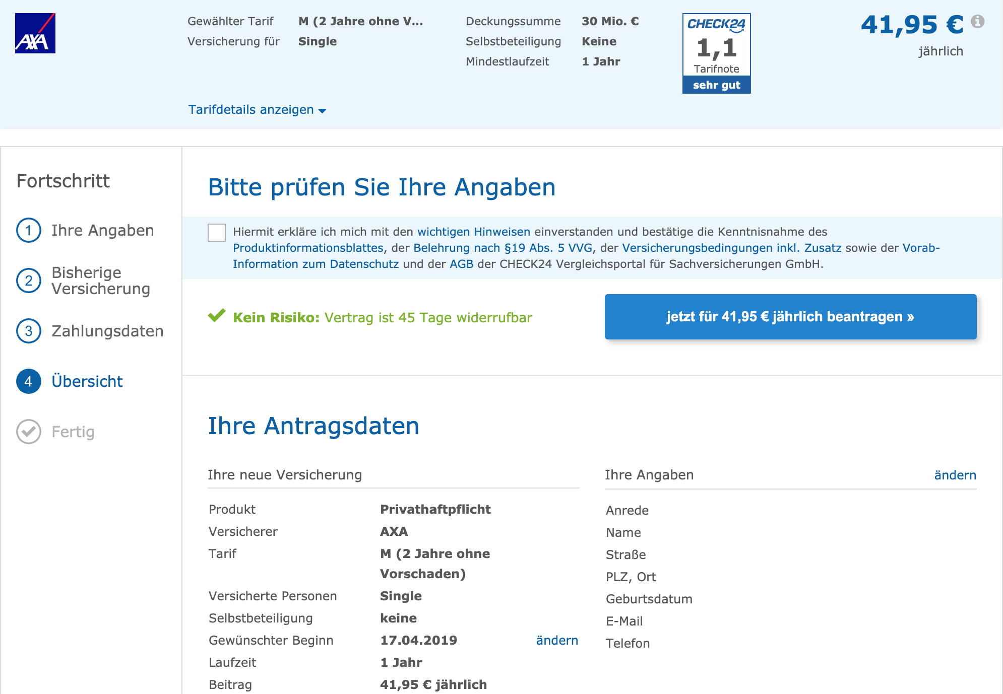 1. Check24 페이지에 가서 Versicherungen -> Privathaftpflicht 로 들어간다.