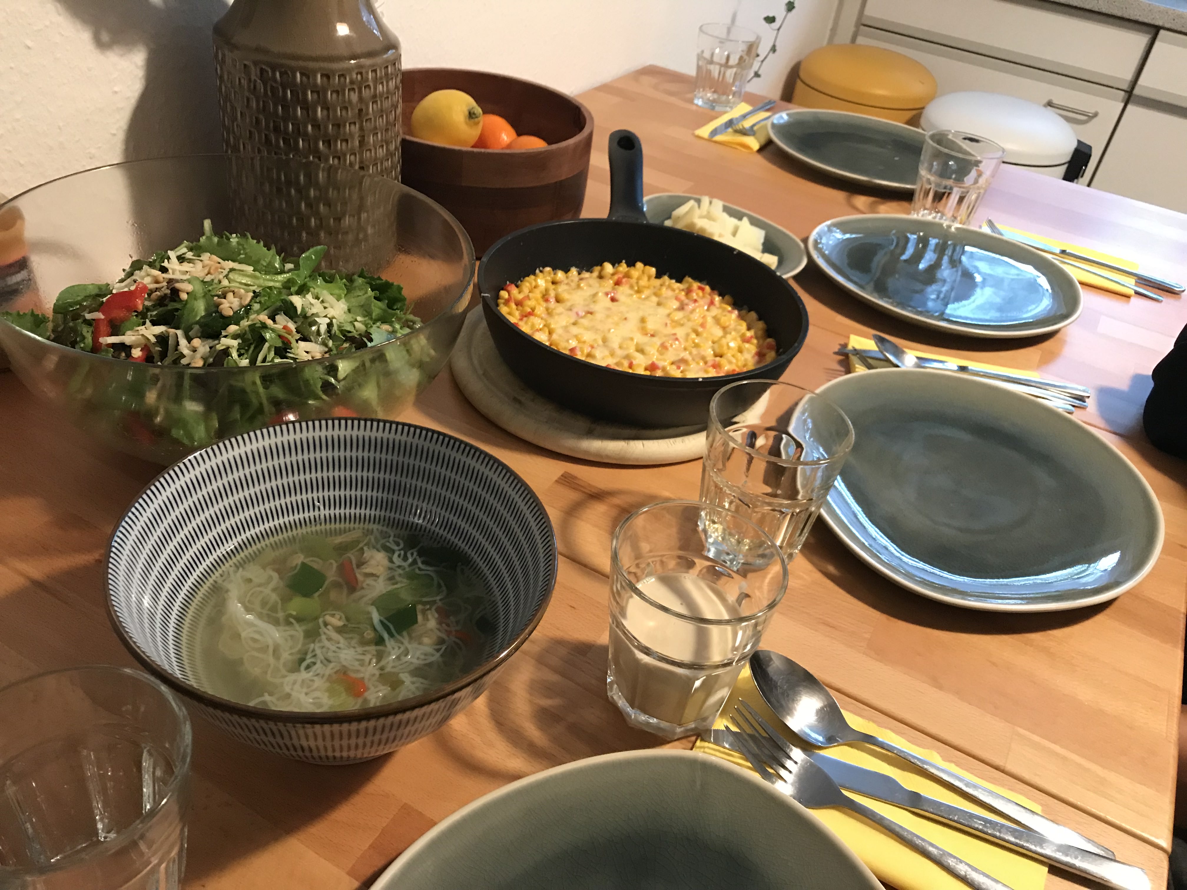술은 친구들이 레드와인, 화이트 와인, 로제 와인 아주 종류별로 다 가져왔고 나는 맥주랑 내가 좋아하는 베일리스, Berliner Luft를 준비했는데 반응이 아주 좋았다. 베일리스를 모른대서 줬더니 깔루아처럼 맛있다며 바로 원샷을 해버렸다. Berliner Luft는 달달한 민트맛이 나는 술인데 깔끔하다며 다들 좋아했다 히히 18도로 소주보다 더 독한데도 달달하고 하나도 안 써서 소주보다 더 좋아하는 술이다. 사실 소주는 맛이 없어서 별로 안 좋아하기도 하고 독일에서 먹으려면 엄청 비싸게 때문에 먹고 싶지도 않다. 반면 베일리스랑 Berliner Luft는 웬만한 슈퍼에서는 다 쉽게 구할 수 있다. 이 날 베일리스는 한 병 다 먹어서 조만간 또 한 병 더 사둬야겠다.