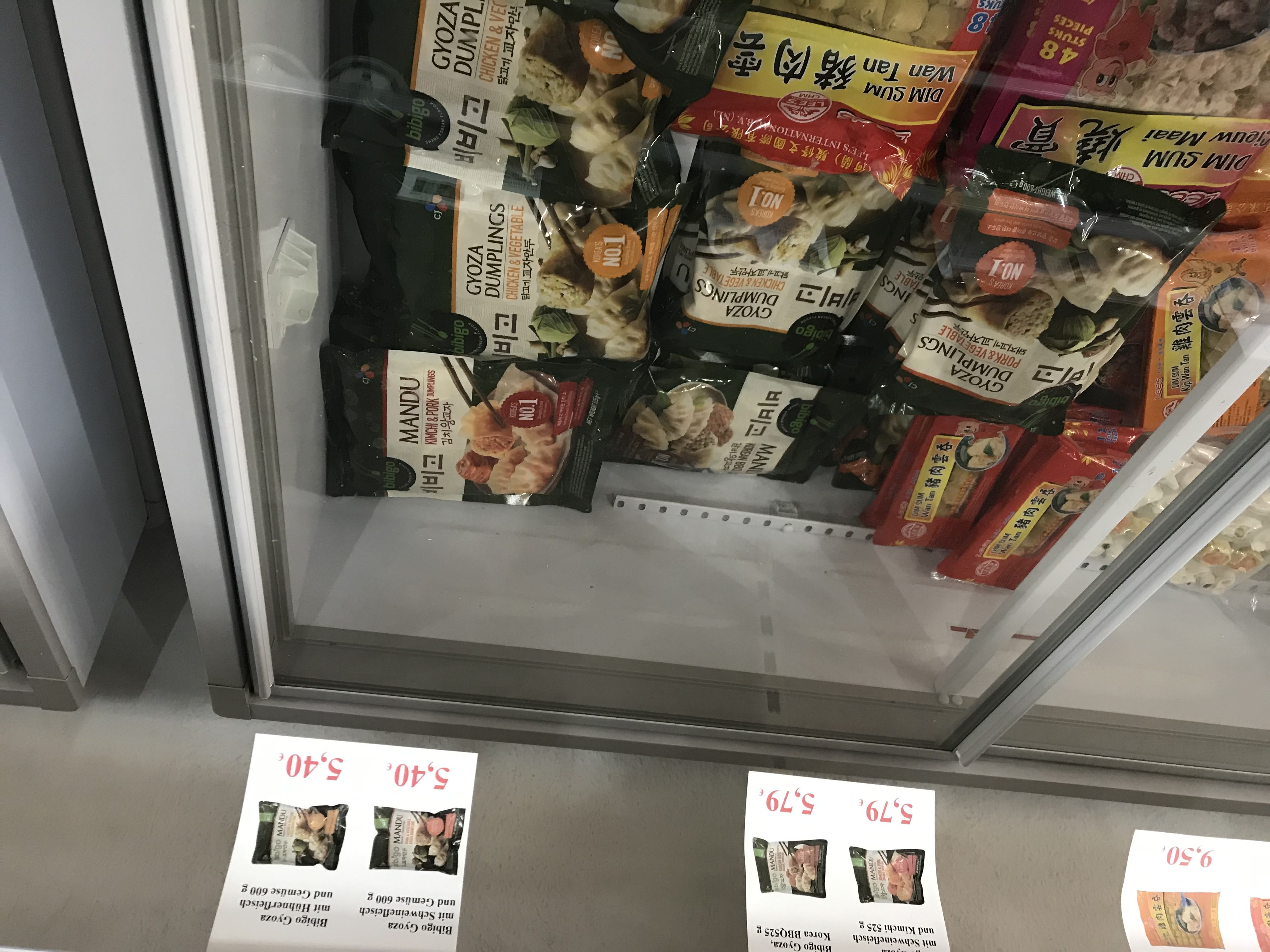 새로 이사 온 동네에서 길을 걷다가 우연히 아시아 마트를 발견해서 들어가 봤는데 함부르크 시내에 있는 다른 아시아 마트나 한인마트보다 더 쌌다. 덴하이데역 근처에 있는 한인마트가 한인마트 중에는 젤 싸다고 하는데 아직 거기는 안 가봐서 모르겠고 가본 곳 중에는 여기가 제일 저렴했다! 확실하지 않아서 지난번 다른 아시아 마트 갔을 때 가격들을 찍어놨는데 여기가 종류는 다양하지 않지만 있는 건 확실히 저렴했다.