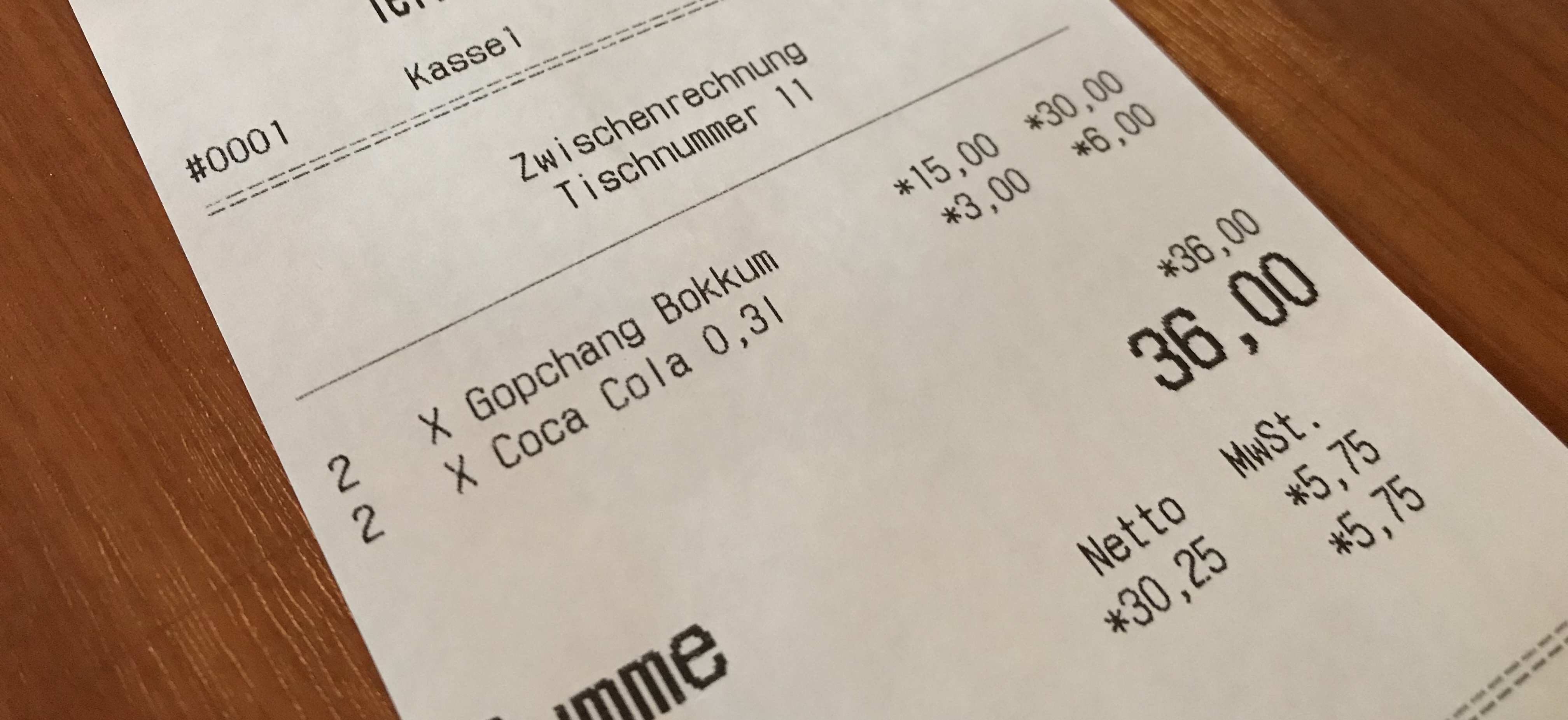 곱창볶음 1인분에 밥 한 공기는 같이 나오고 우리는 추가로 한 공기를 더 주문했는데도 그냥 주셨다. 그래서 가격은 곱창 2인분에 음료 2잔까지 합쳐서 총 36유로 나왔다.