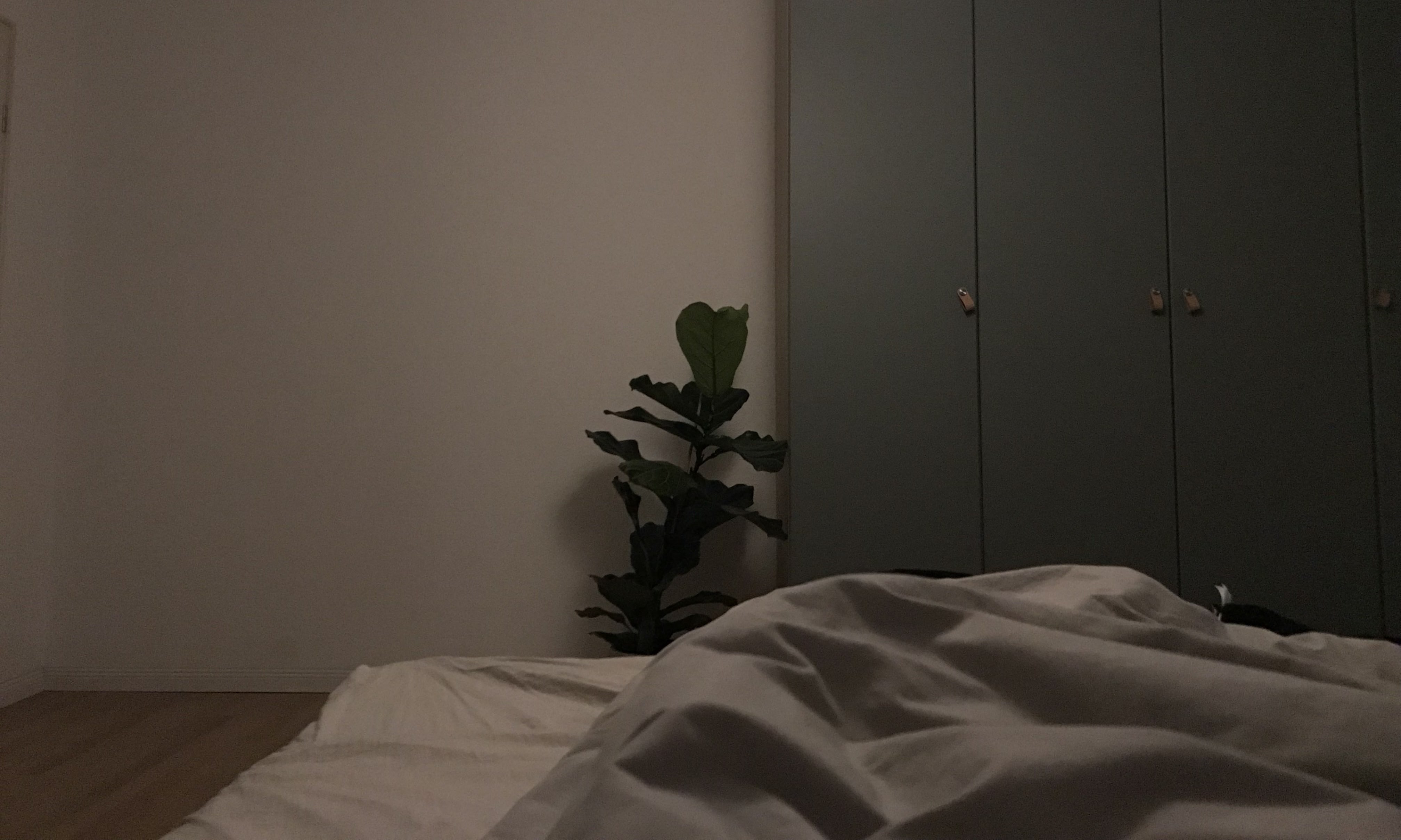 침대에 누워서 보는 방 모습. 사진 왼쪽에 문이 있는데 평소에 저 벽이 좀 허전하다고 생각해 저기 뭘 놓으면 좋을까 고민하고 있었다.