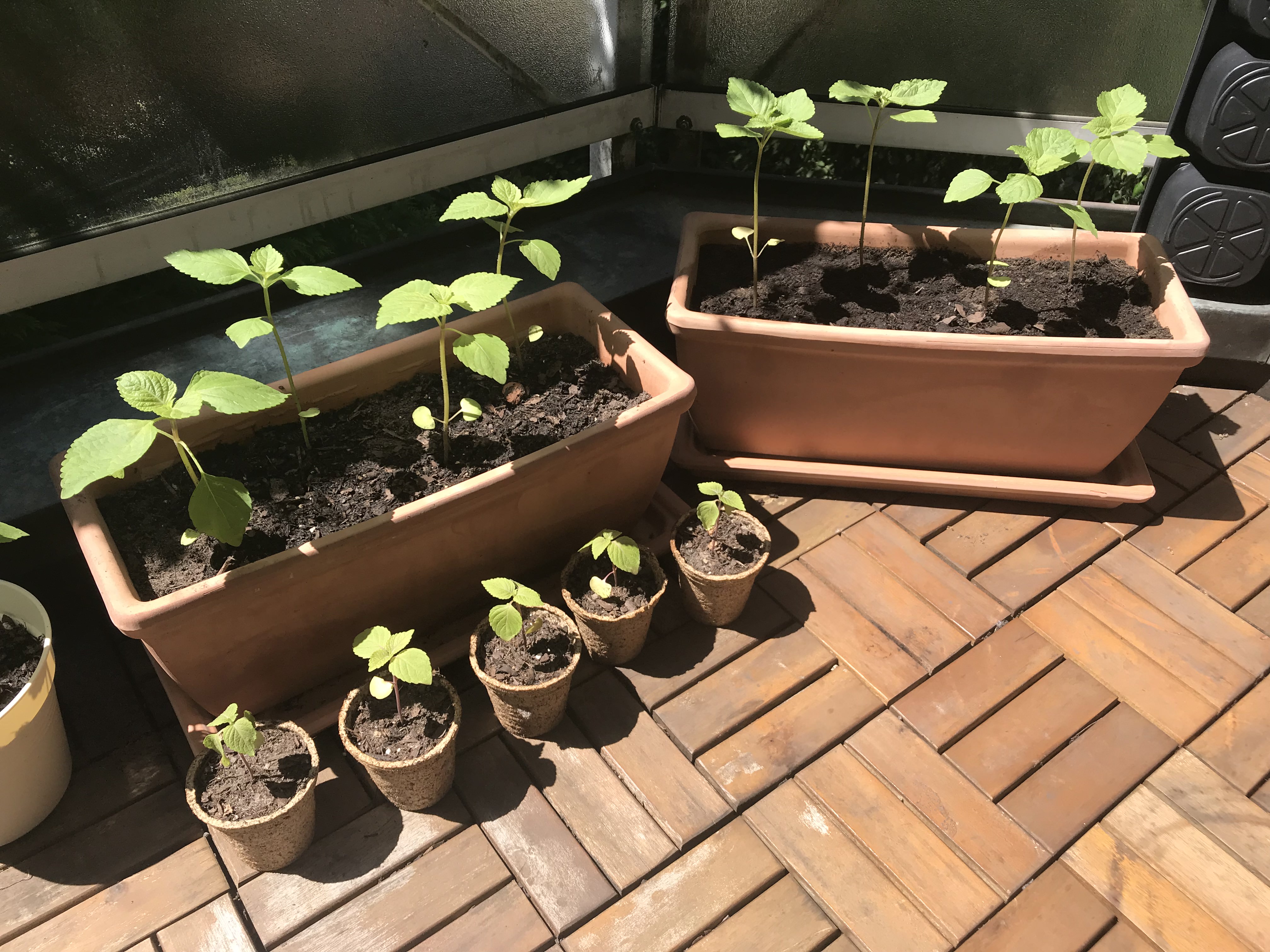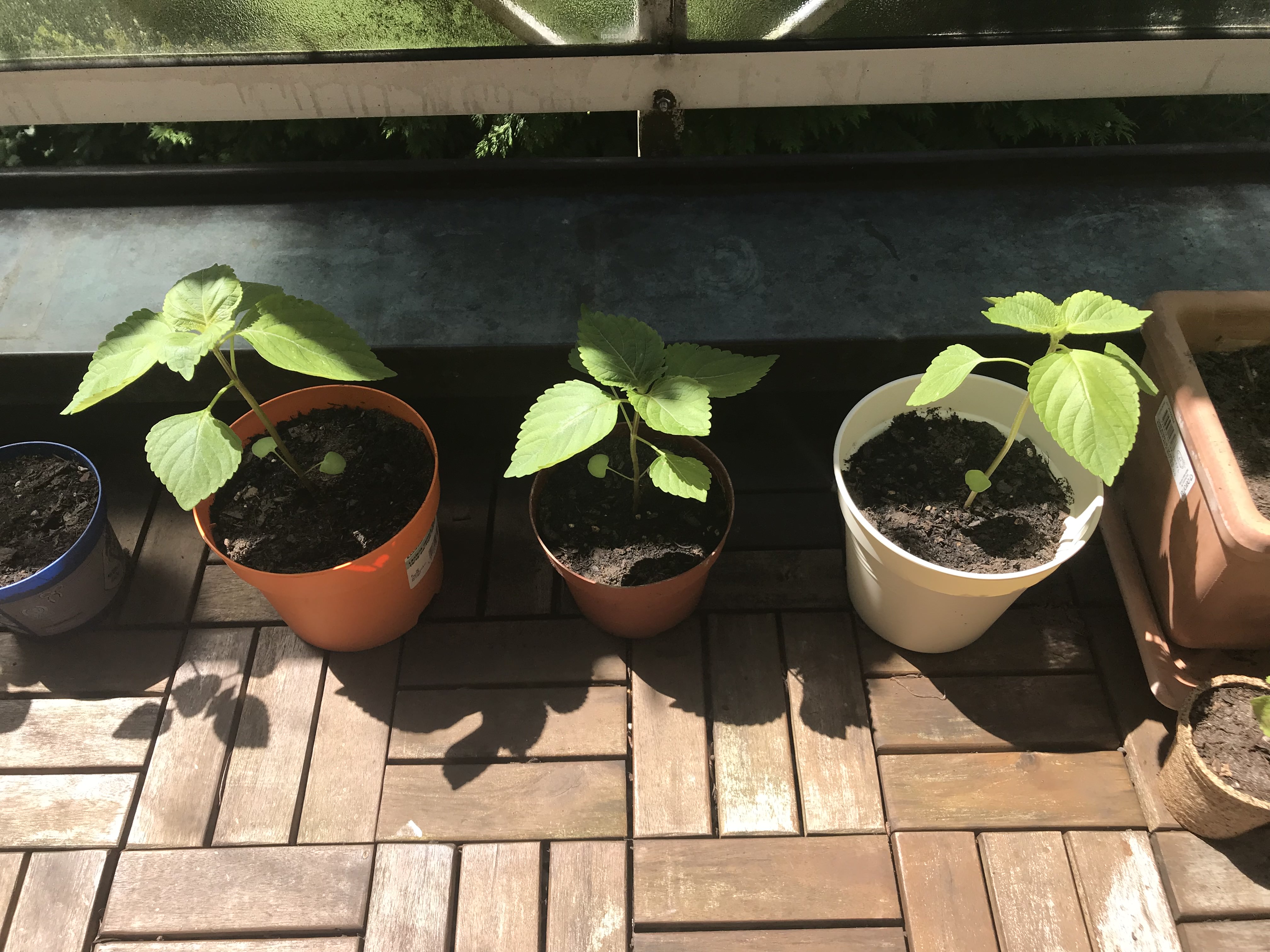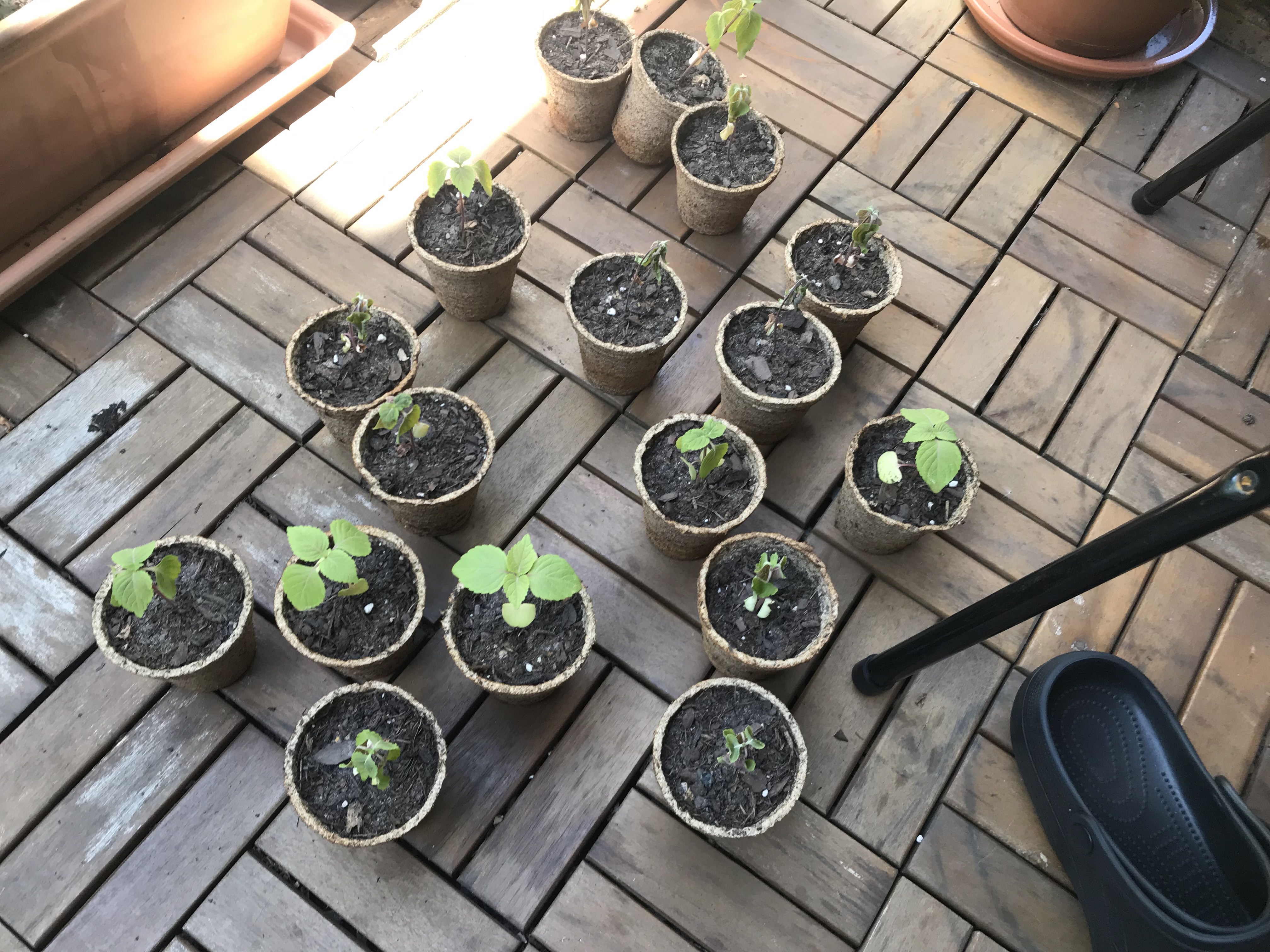 반면 보험으로 남겨두고 대충 케어했던 판에 있던 애들은 무럭무럭 잘 자라서 화분으로 옮겨 심어줬다. 화분에 심긴 애들이 판에 있던 애들이고 앞에 쪼끄맣게 있는 애들이 하나씩 옮겨 심고 내가 케어해줬던 애들인데 크기가 엄청 차이 난다. 좀 커지니 제법 깻잎 같아졌다. 죽은 애들은 버리고 그나마 괜찮은 애들은 남겨놨는데 곧 죽을 거 같다.