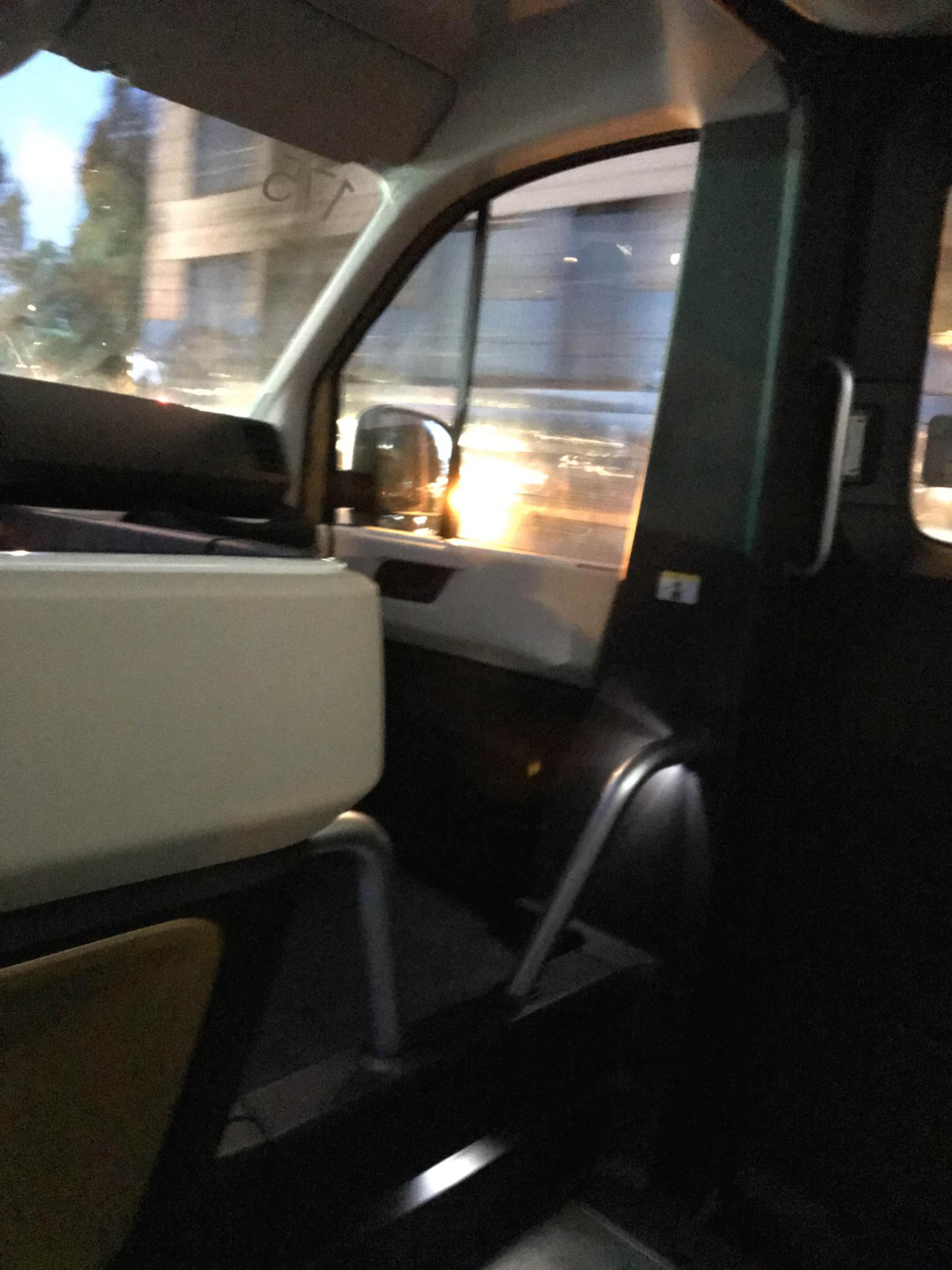 내가 탈 때 승객 한 명이 있는데 중간에 내려서 이때다 하고 내부 사진을 찍어봤다. 총 6명이 앉을 수 있고 맨 뒷자리 세 좌석을 제외하곤 다 떨어져 있어서 너무 좋았다. 의자도 폭신한 건 아닌데 뭔가 감싸주는 느낌에 머리 받침대도 있어서 편했다.