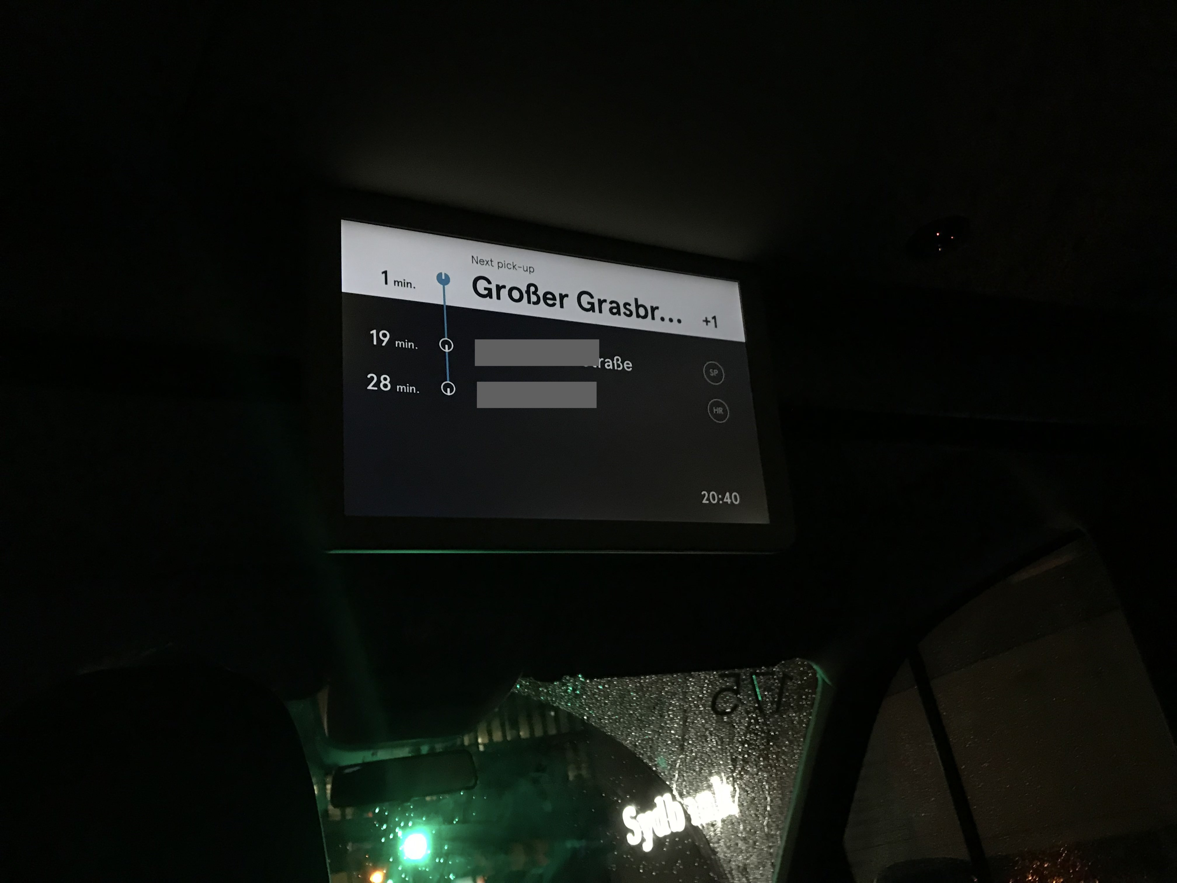 차량 내부에 있는 스크린으로 도착지까지 얼마나 걸릴지 보여주고 중간에 타는 다른 승객이 있으면 그때그때 업데이트 된다.