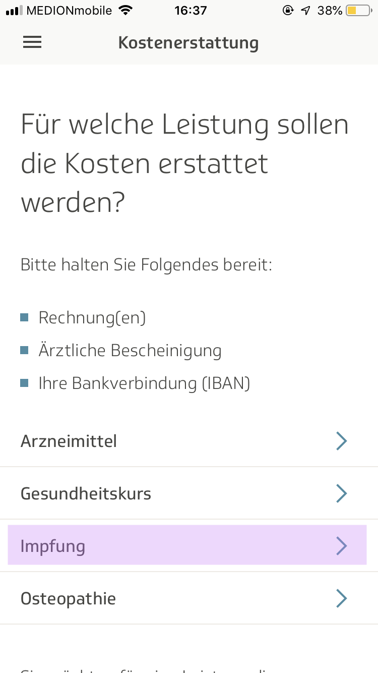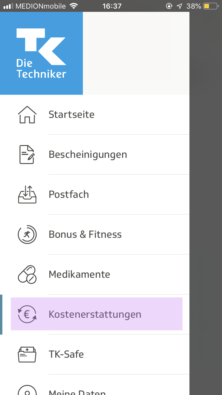 1. TK 어플을 켜 메뉴에 있는 Kostenerstattungen으로 들어간다.