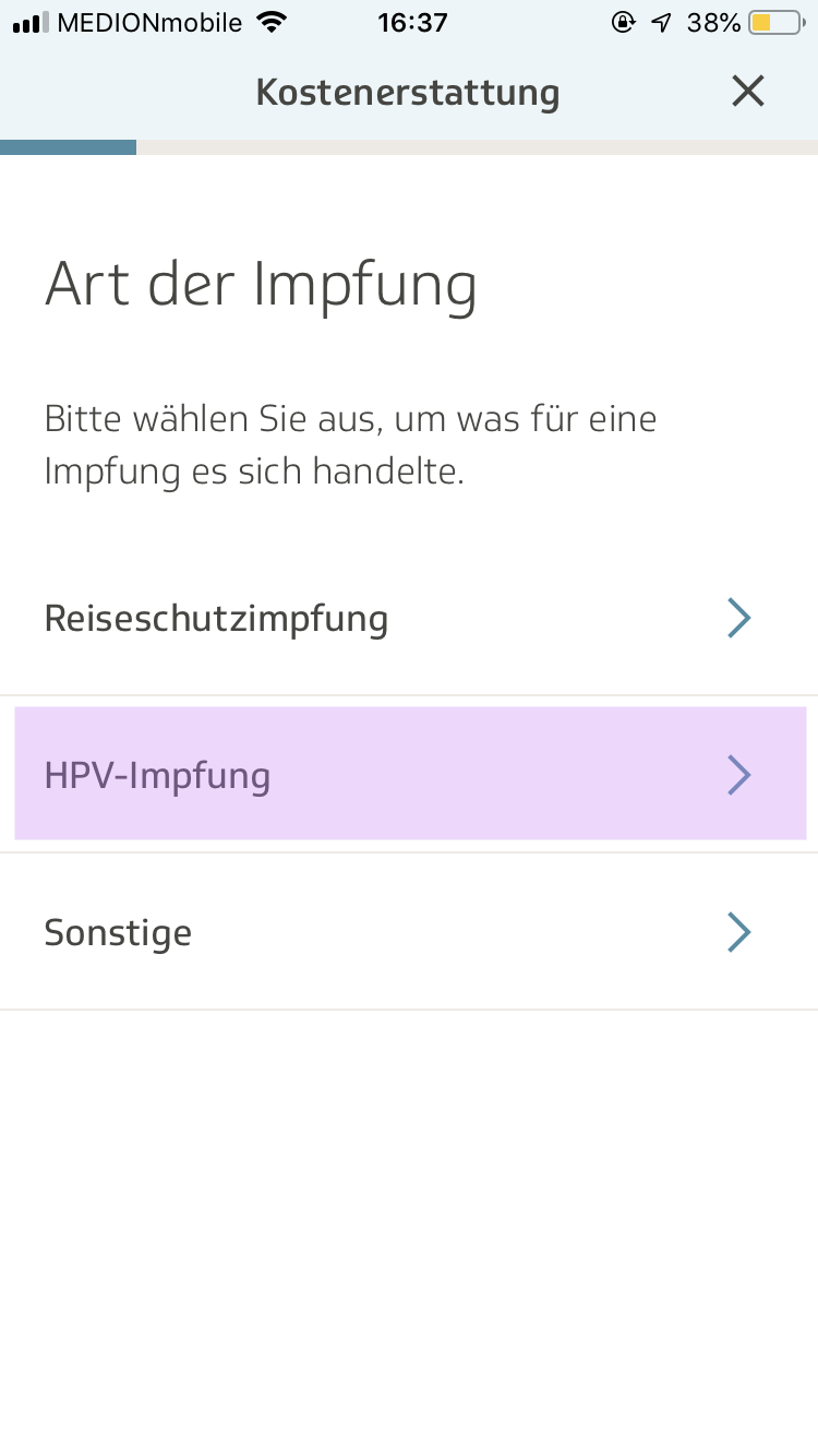 3. 백신 중 HPV-Impfung 선택한다.