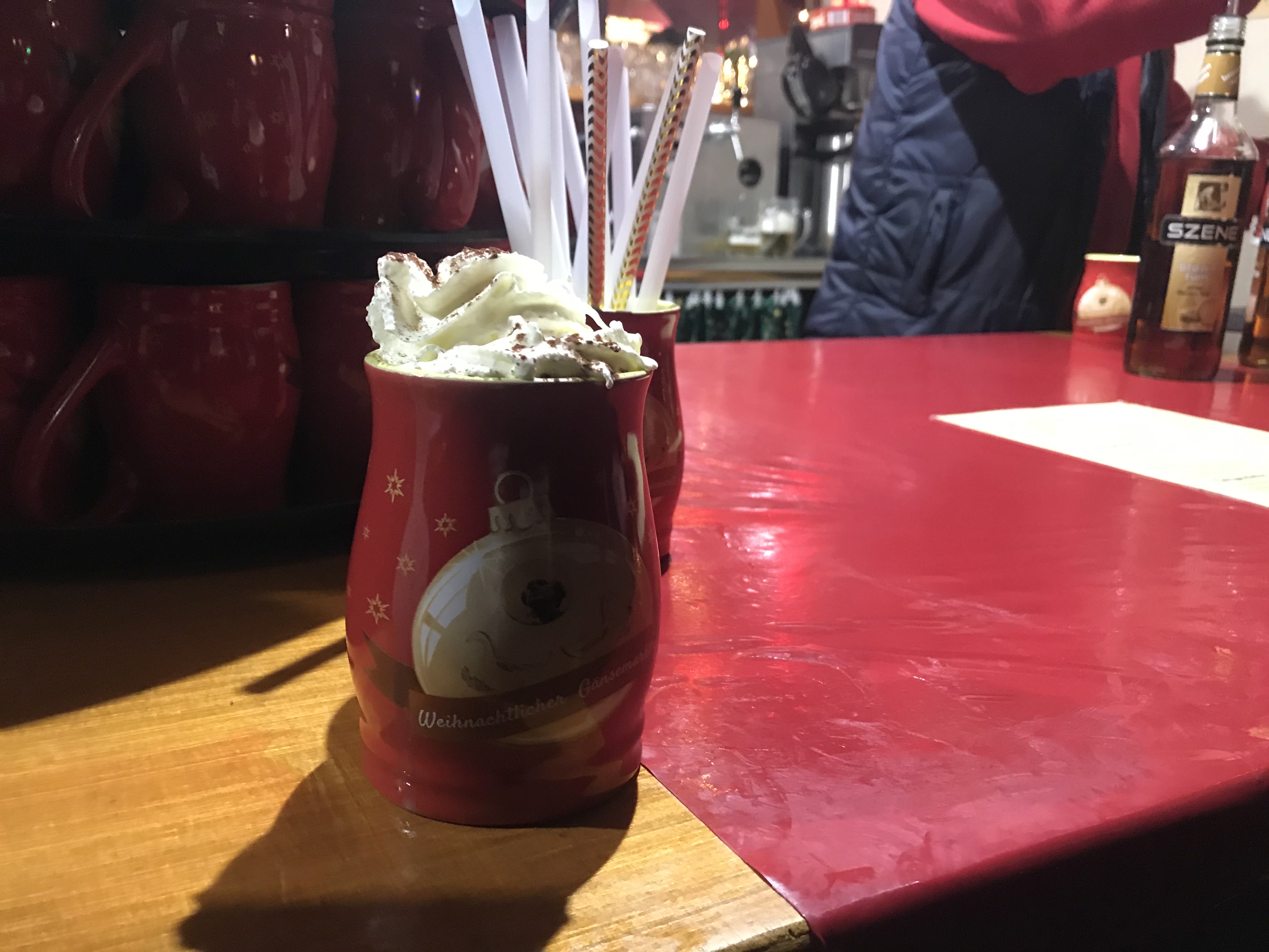 Weißer Glühwein은 일반 Glühwein 보다는 가볍다. 그래서 이후론 항상 크리스마스 마켓에 가면 Weißer Glühwein을 마셨다. Weißer Glühwein은 모든 마켓에 다 있는 건 아니고 물어봐야 한다. 하지만 Weißer Glühwein도 같이 가면 나도 한 잔 먹어야 하니까 먹는거지 좋아하는 건 아니라 크리스마스 마켓 가서 술 먹는 거에 별로 재미를 못 느꼈다. 그런데 어느 날 나한테 딱인 음료를 발견했다.