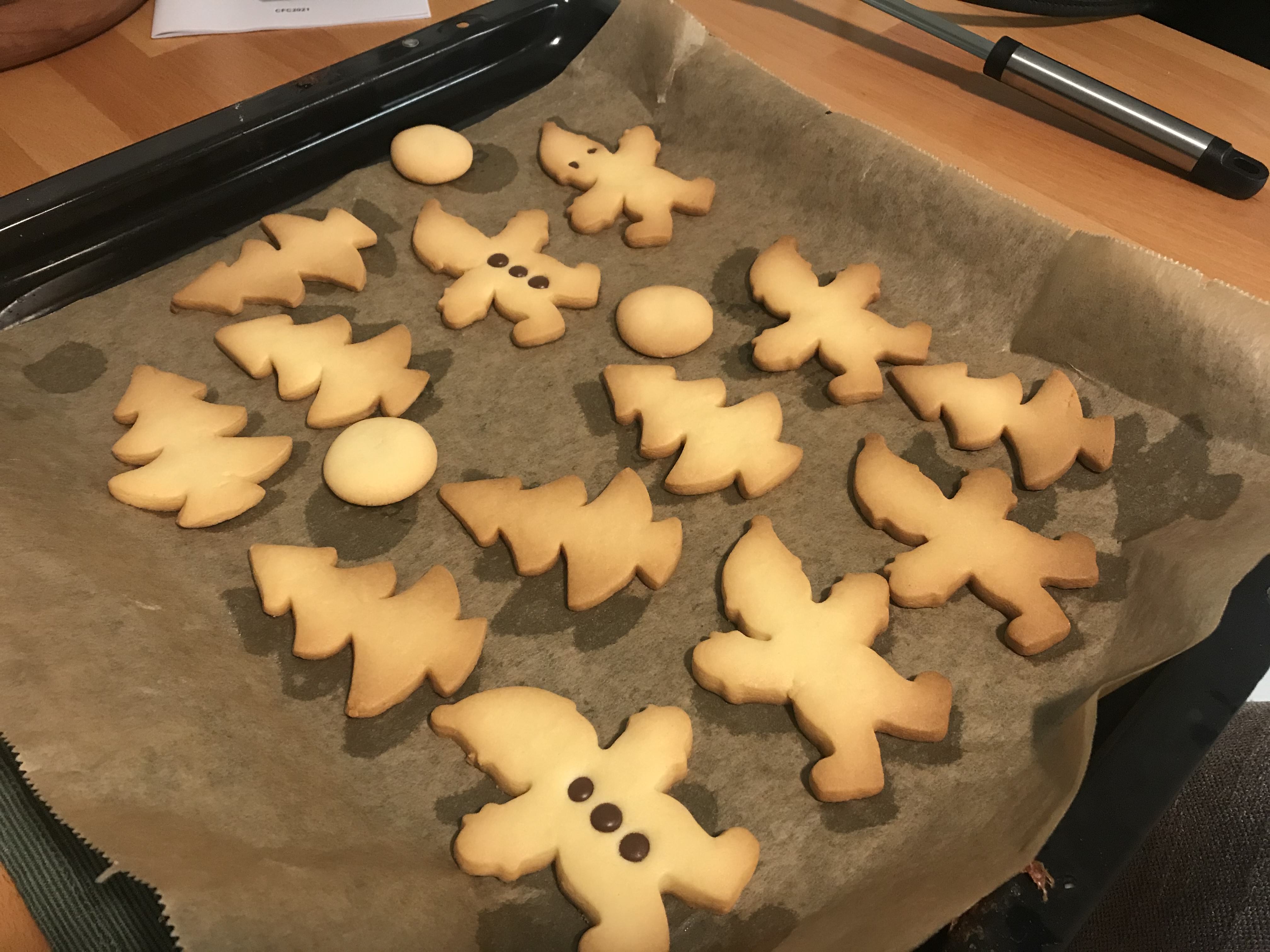 Arne 레시피는 뭔지는 모르겠고 여기선 설탕 대신 슈가파우더를 썼다. 시키는 대로 반죽을 하고 냉장고에 넣으래서 넣었는데 30분 지나고 나니까 정말 딱딱해졌다. 나는 그래도 좀 말랑할 거라 생각해서 넣고 나서 한 번 더 반죽을 밀려고 생각했는데 더 밀 수 없고 바로 찍어야 할 정도로 단단했다. 그래도 어찌어찌해서 찍어가지고 오븐에 넣었다.