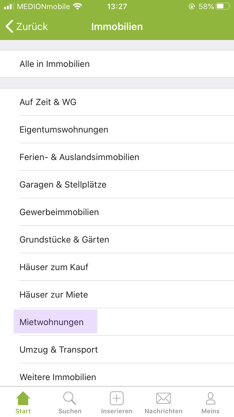 사용법도 간단하다. eBay Kleinanzeigen 어플을 깔고 첫 화면 상단에 있는 Immobilien (부동산) 👉Mietwohnungen (월세)