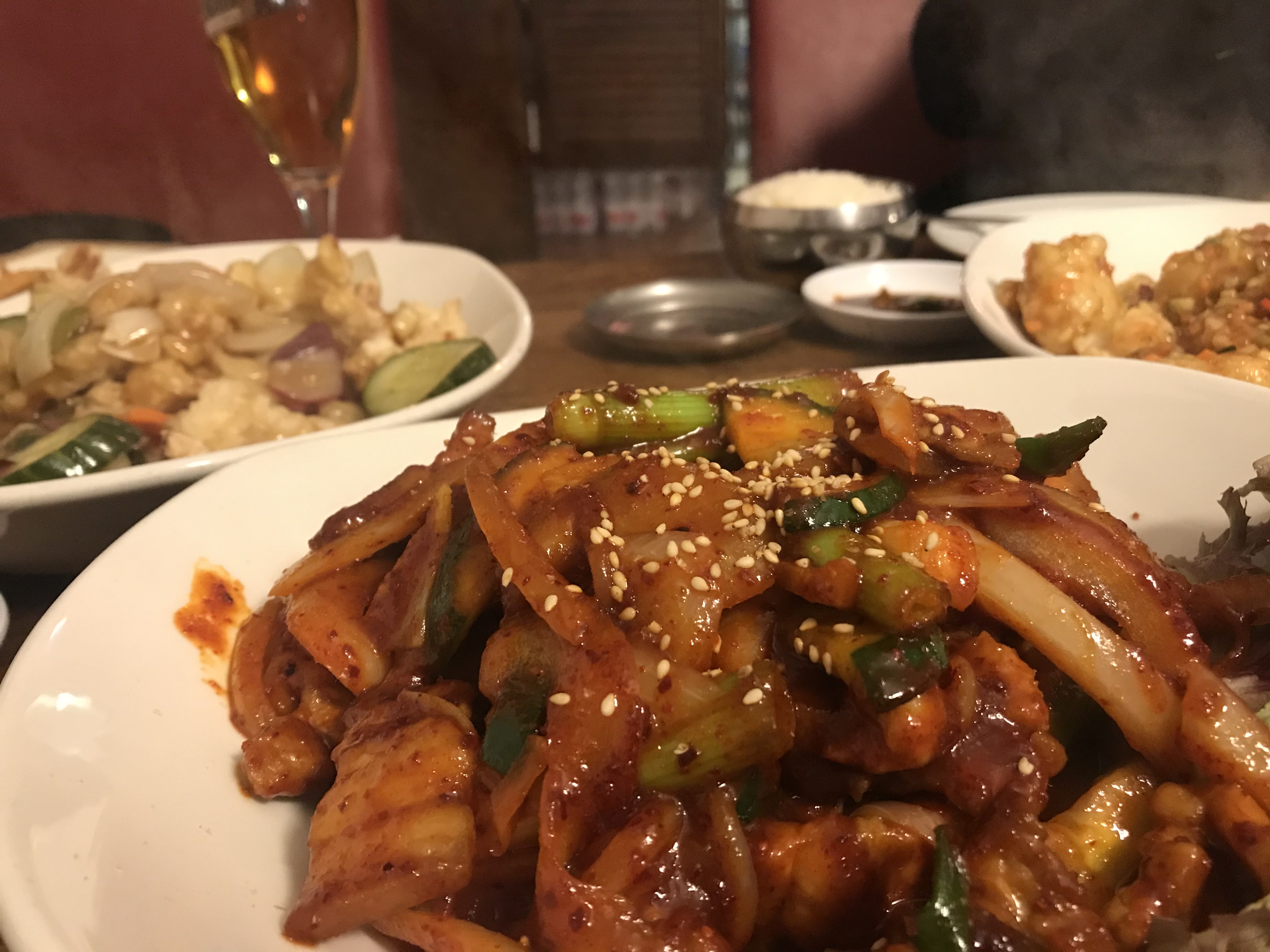 마지막은 제육볶음이었나 돼지두루치기였나? 아무튼 그런 종류의 음식이다. 기대했던 딱 그 맛의 양념이었고 밥이랑 먹기 좋았다. 요리 하나에 밥 하나가 나왔고 밑반찬은 6가지 정도 나오는데 양도 많이 주시고 김치가 내 스타일이 이었다. 신김치보다는 겉절이 스타일을 좋아하는데 딱 그런 김치다. 밑반찬도 다 맛있었지만 메인 요리들이 너무 맛있어가지고 그거 먹느라고 바빠서 밑반찬은 별로 못 먹었다. 지금 생각하니 아쉽네.. 김치 또 먹고 싶다.