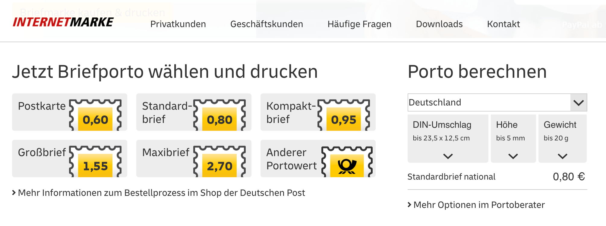 Mit dem Online-Porto INTERNETMARKE drucken Sie einzelne oder mehrere Briefmarken für Postkarten und Briefe schnell und bequem selbst aus – auf Wunsch direkt mit Adresse.