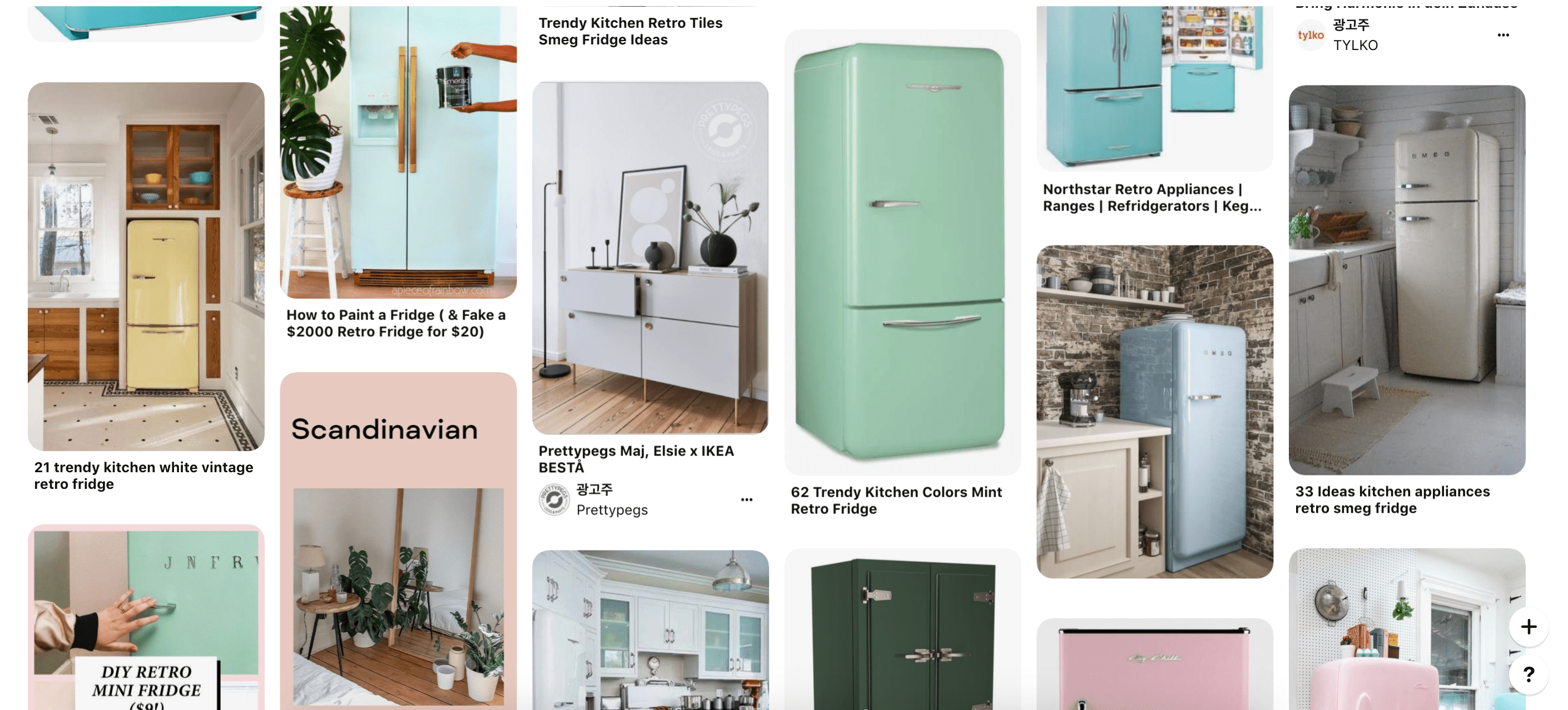 새 집에도 식물을 많이 가져다 놓고 포근하게 꾸밀 거라서 메탈 소재 냉장고보다 이렇게 아기자기한 레트로 냉장고를 갖고 싶었다.