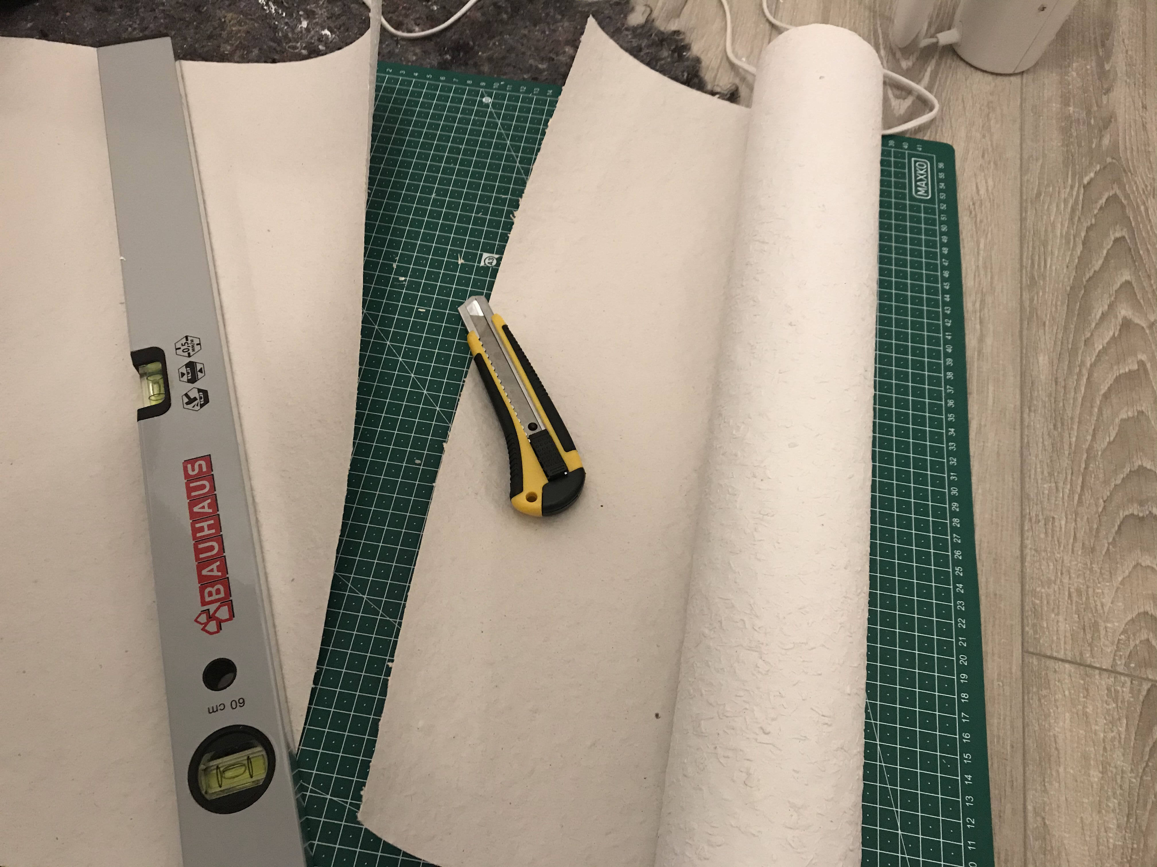 재단한 벽지 위에 풀을 치덕치덕 발라준다. 다 발랐으면 벽지를 겹치게 접어서 15분 정도 놔둔다. 이렇게 되면 접착력이 높아지나? 왜인진 모르겠고 설명서에 그렇게 적혀있으니 시키는 대로 해준다.