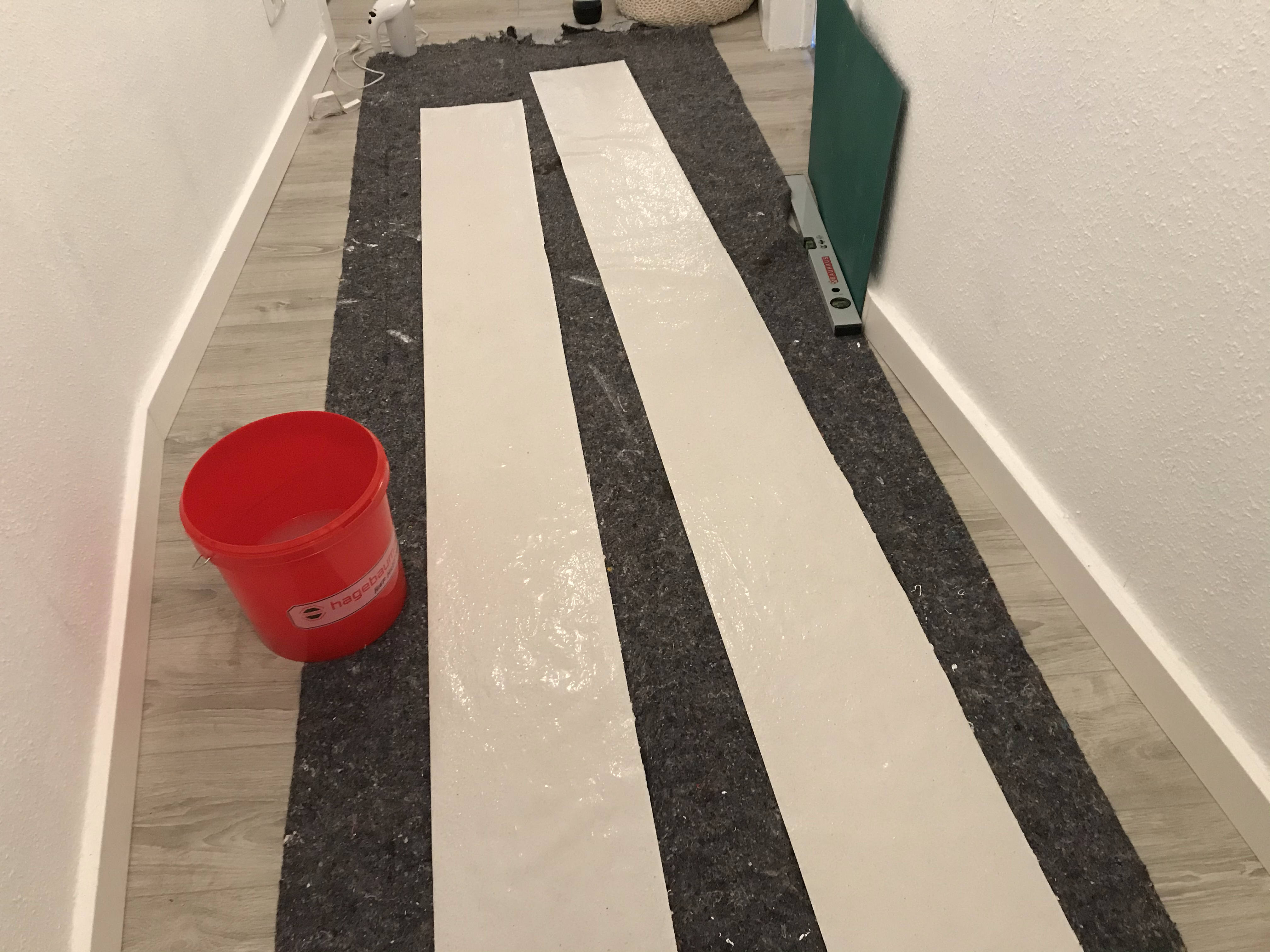 작업실이 없으니ㅠㅠ 복도에서 작업할 준비를 해주고 벽지를 재단한다.
