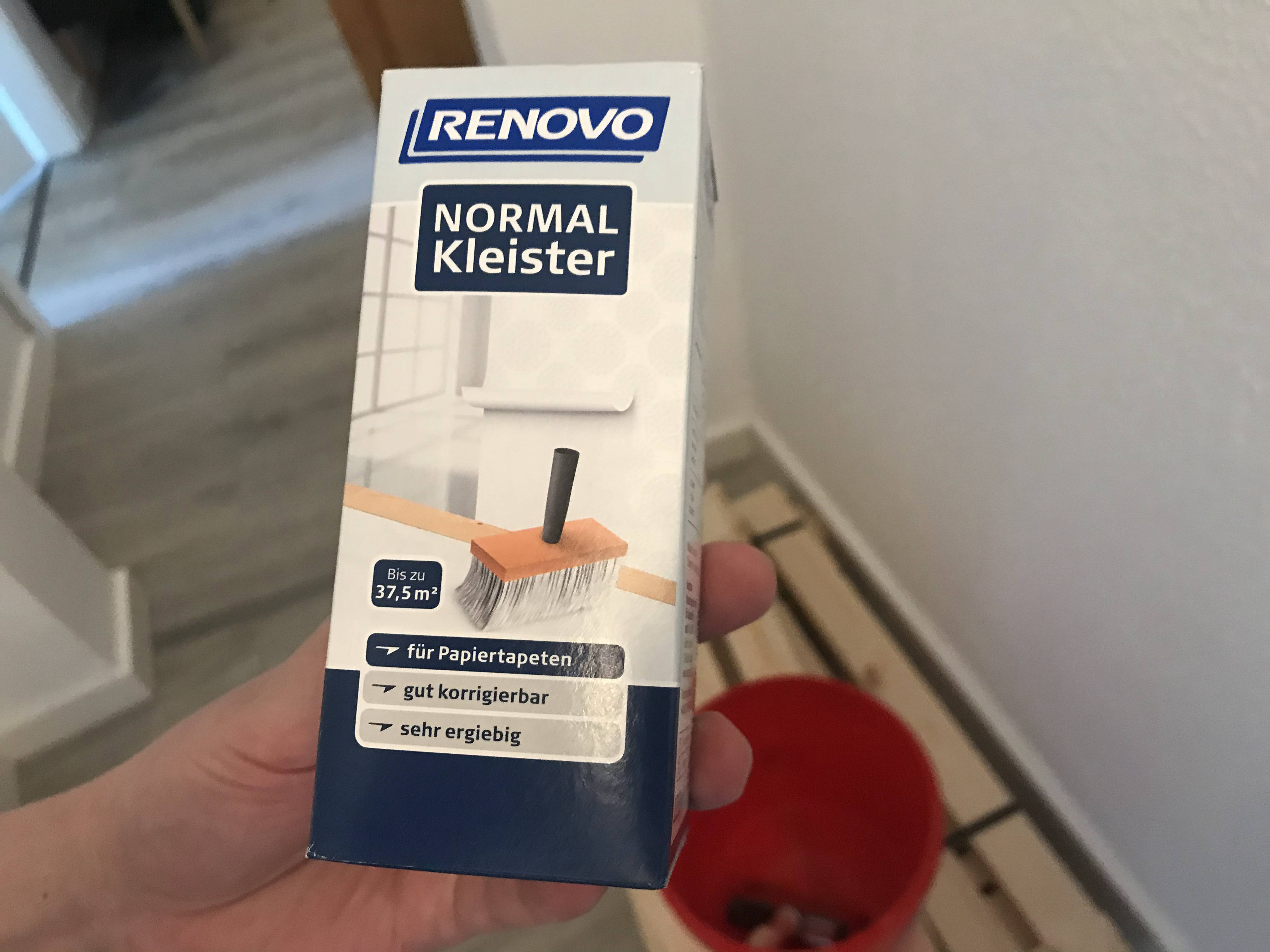 벽지를 붙일 때 사용할 풀이다. 가루 형태로 있어 적힌 비율대로 물과 섞어 사용한다.