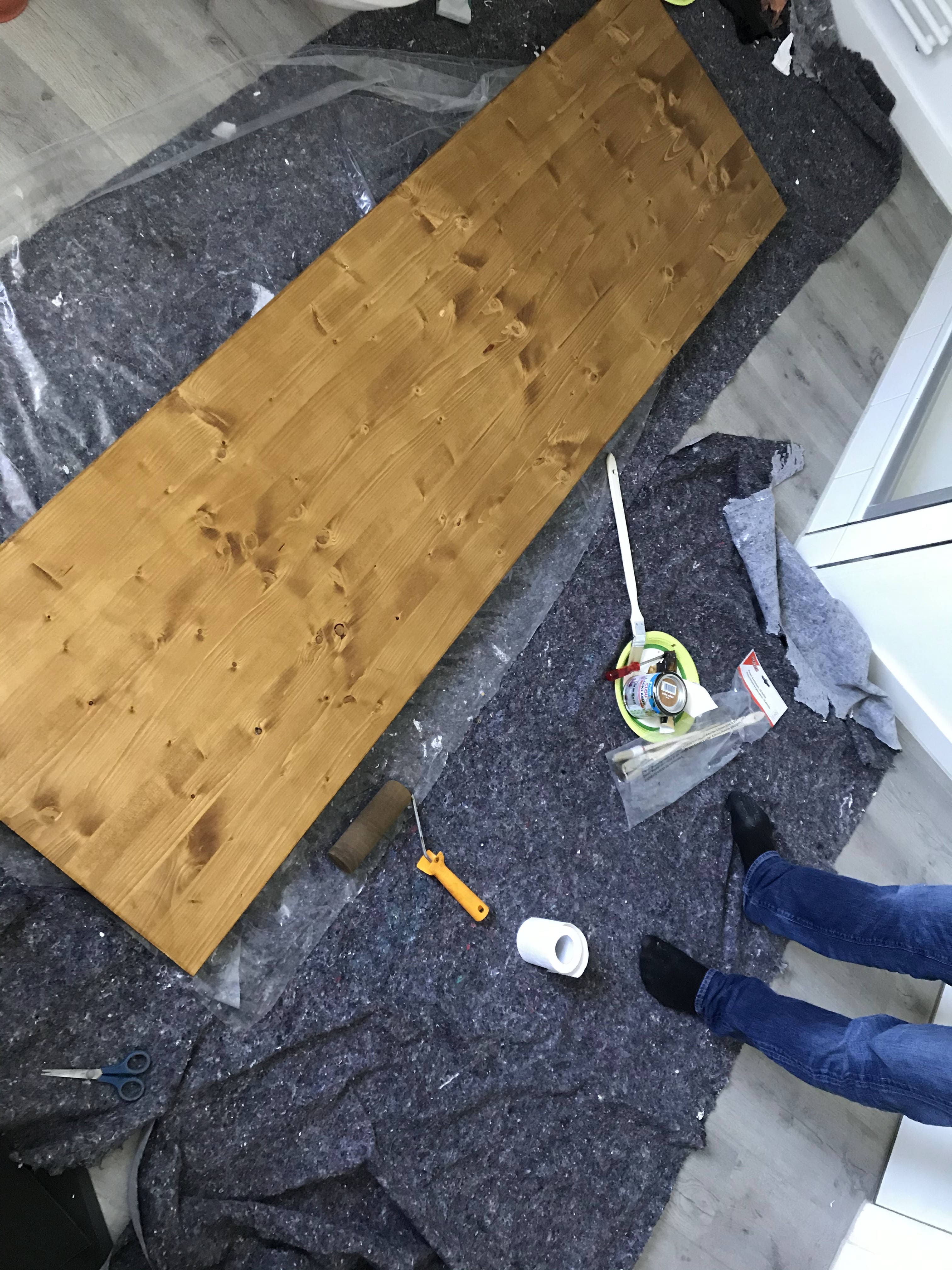 1차로 칠해준 모습. 색도 너무 어둡지 않아 마음에 들었다. 세네 시간 정도 말린 뒤 사포질을 해주고 한 번 더 칠한다.