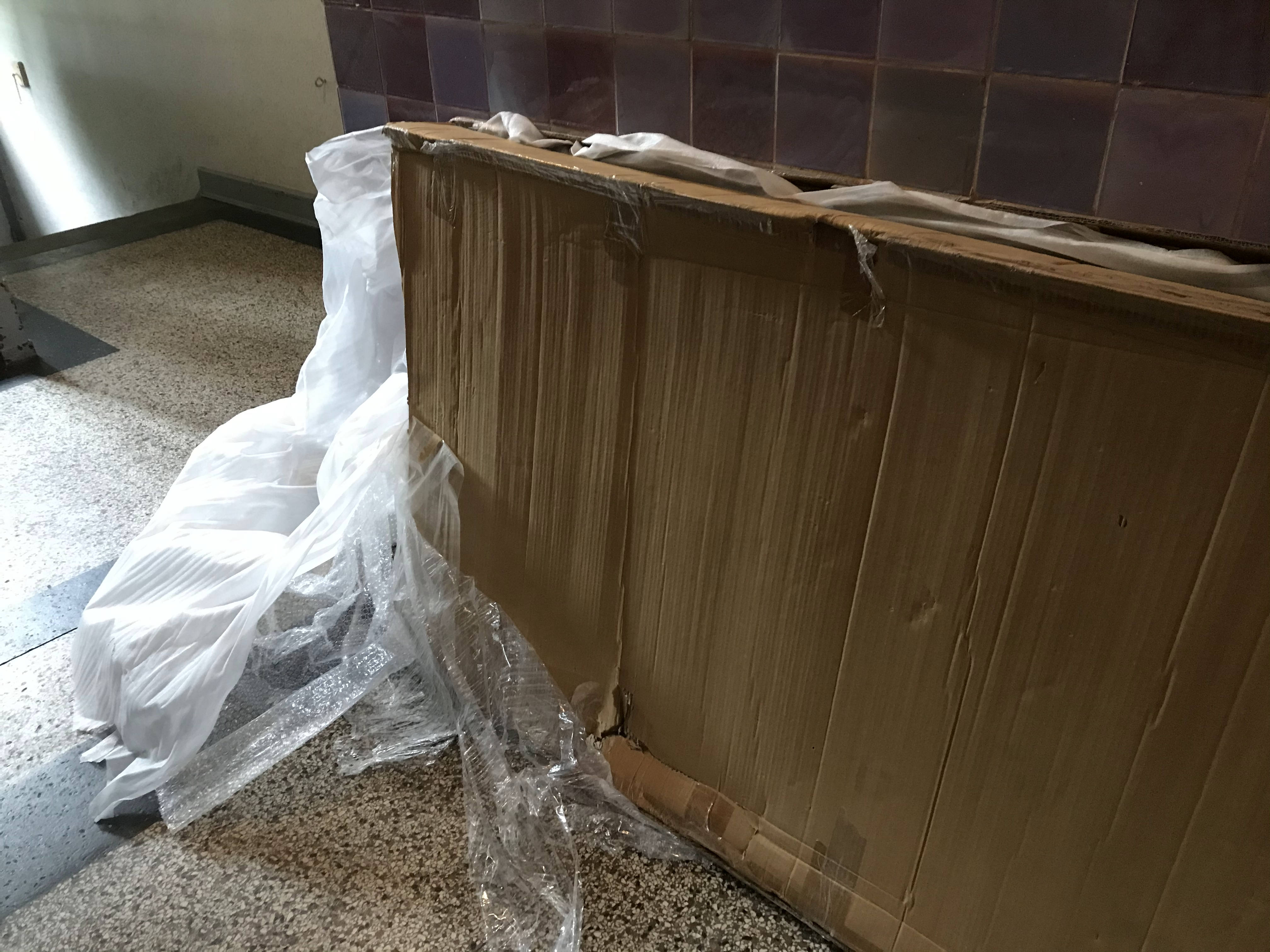 식탁은 홈페이지에 적힌 것처럼 며칠 뒤에 바로 배송이 되었다. 식탁이 배송됐다며 밑으로 내려간 Arne가 갑자기 내려오라며 전화를 했다. 가보니 어이없다는 표정의 Arne와 거대한 식탁 이렇게 덩그러니 놓여 있었다. Arne에게 이게 무슨 상황이냐고 하니 택배 기사가 그냥 놓고 갔다고 원래는 건물 안까지도 안 옮겨주는데 옮겨준 거라고 했다. 주문할 때 확인을 못 했는데 집 안까지 배송이 아니라 건물 앞까지 배송이었나 보다.