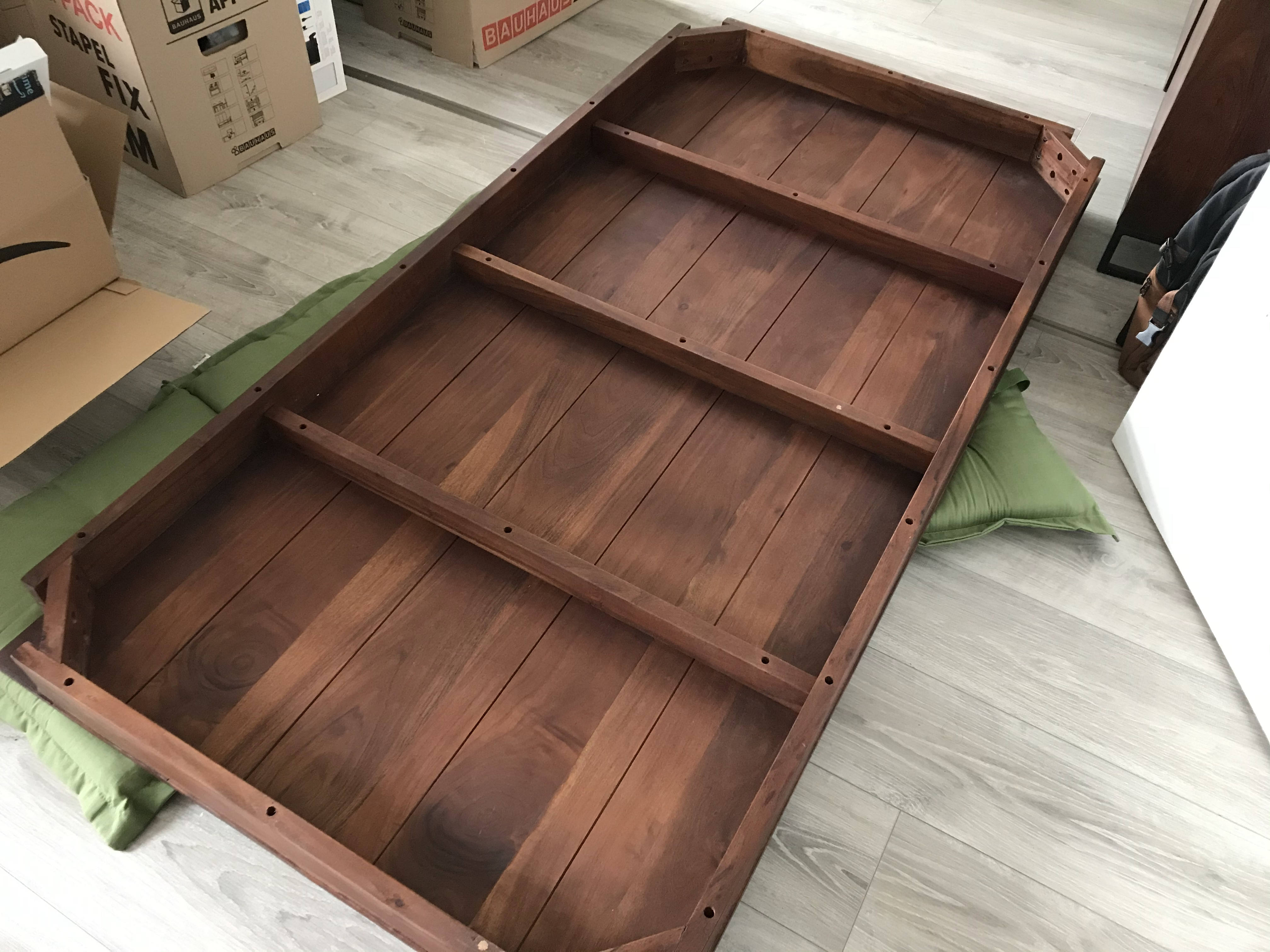 원목 식탁답게 너무 무거워서 우리는 분해해서 옮기기로 했다. 다리 네 개를 우선 먼저 옮겼는데 다리가 꽤 무거워서 분리하길 잘했다.