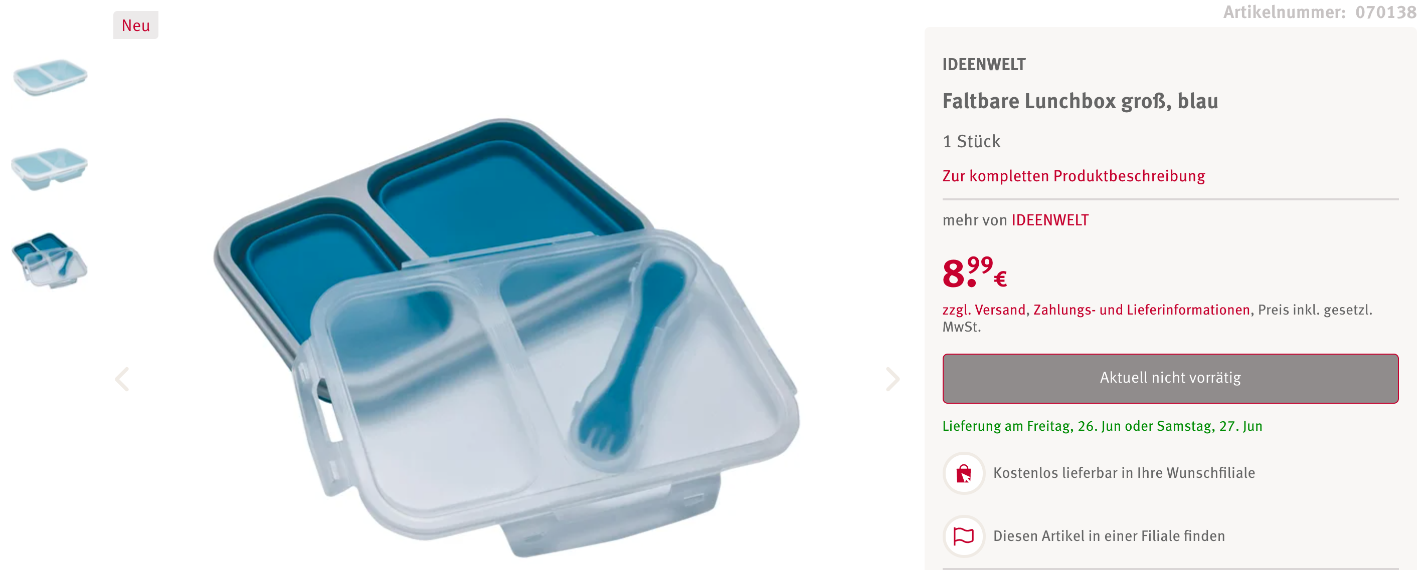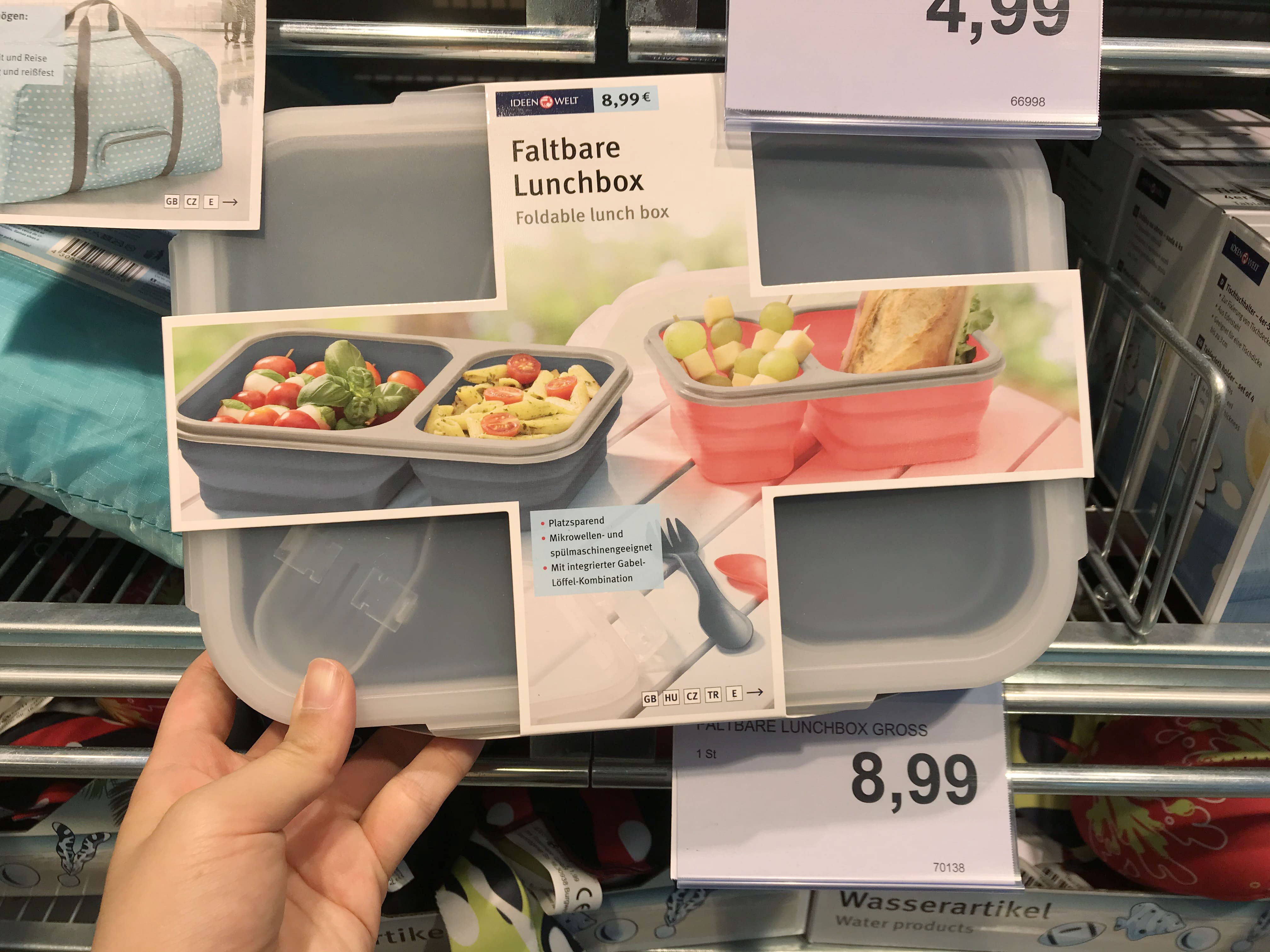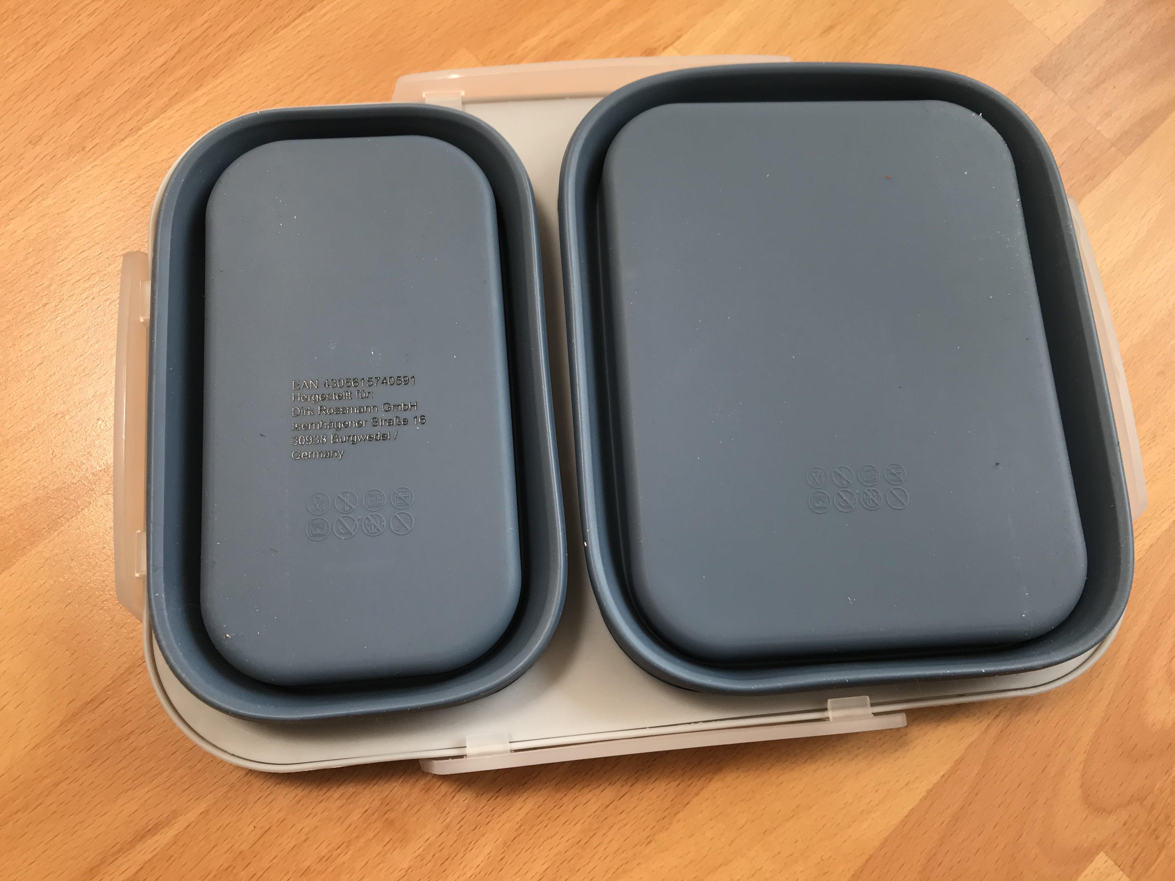 오늘 로스만에서 접이식 실리콘 도시락통을 또 만났다. 심지어 1유로 더 저렴한데다 로스만 앱에는 10% 할인 쿠폰이 있으니 더 싸게 살 수 있다. 이건 운명이야~ 생각하고 구매했다. Tchibo 도시락 통보다 색은 덜 예쁘긴 하지만 어두워서 변색될 위험도 적고 작은 칸 2개보다 중간 사이즈 1칸 큰 사이즈 1칸이 더 실용적일 것 같았다. (구구절절...)