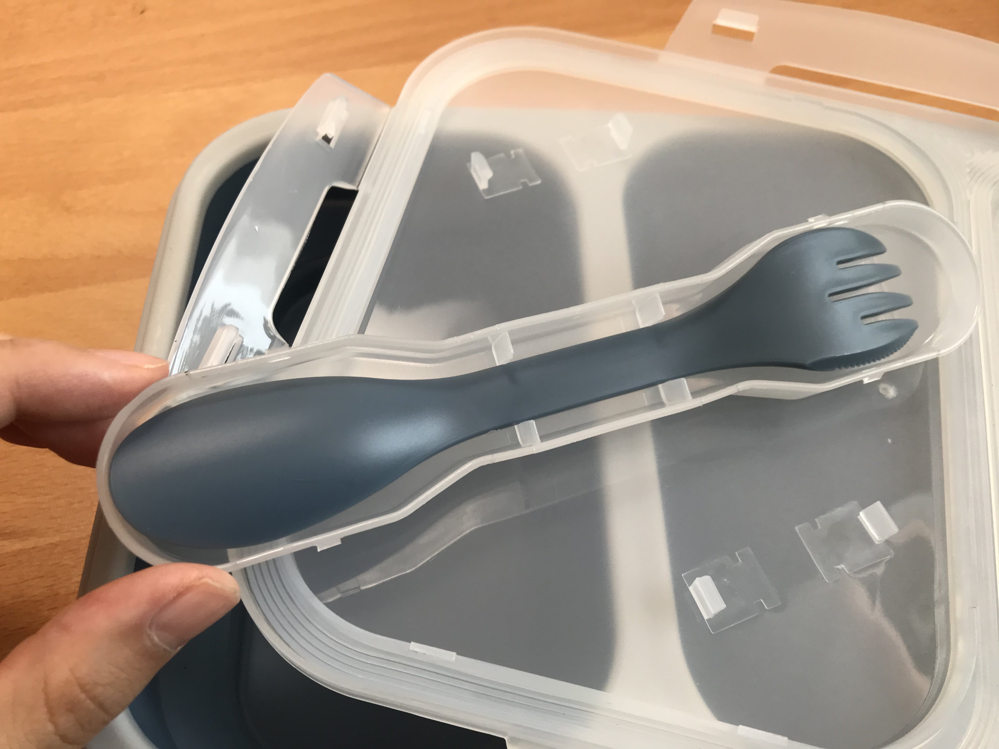 같이 담겨있는 포가락..포크 한쪽 면이 나이프로 되어있다. 어쩔 수 없이 야외에서 뭘 먹는 상황에서만 쓸 것 같다. 단단하게 고정되어 있어서 달그락 거리진 않는다.