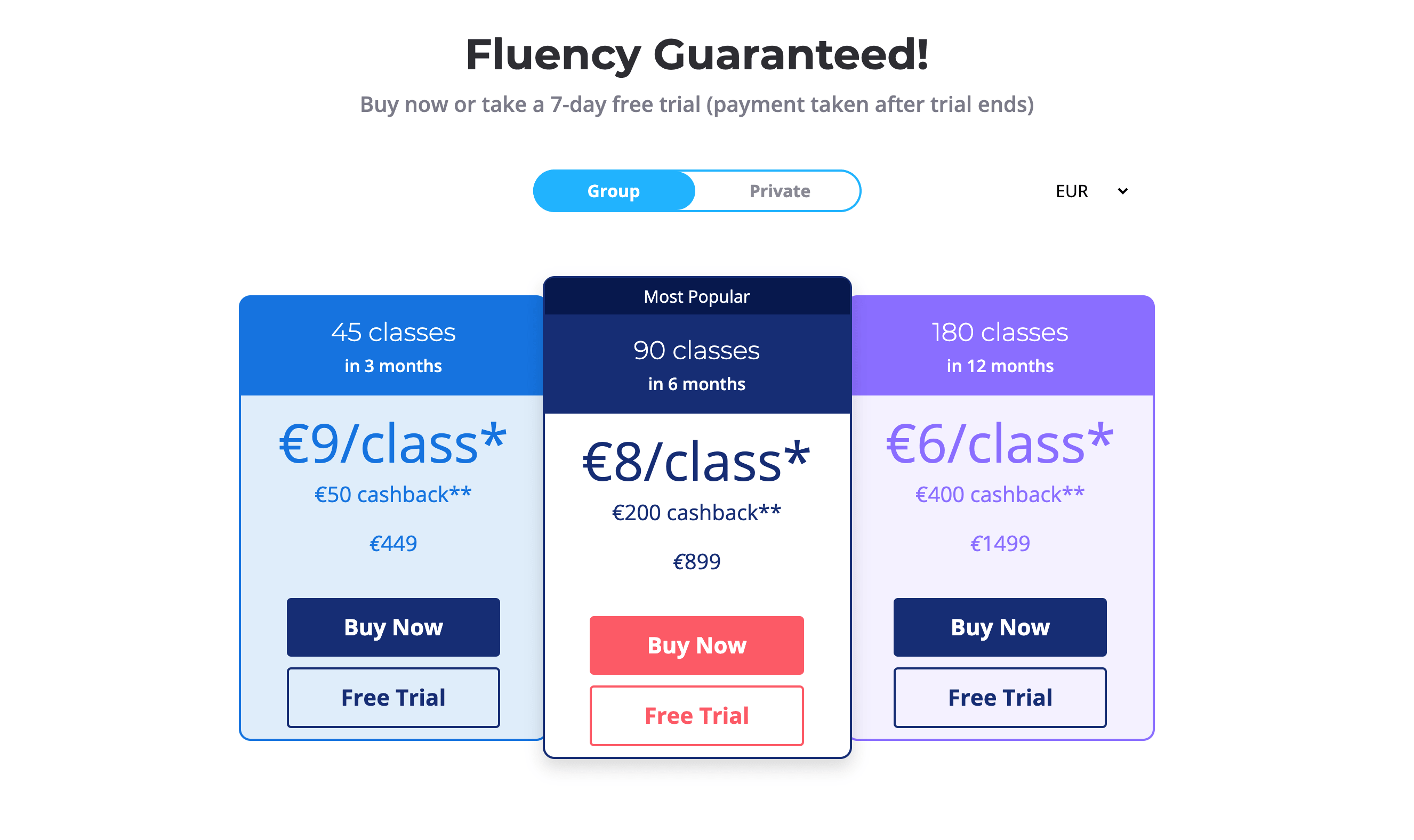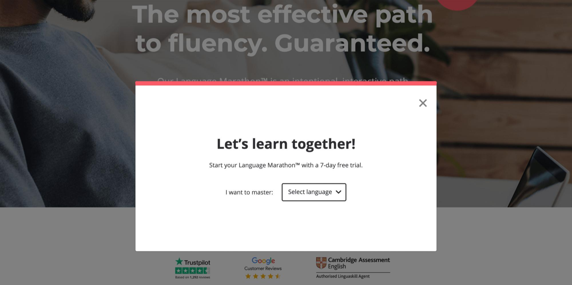일단 홈페이지로 가서 Monthly, Marathon, Sprint 중에 어떤 방식으로 배울지 메뉴에서 선택하면 이렇게 언어를 선택하라는 창이 뜬다. 나는 마라톤에 독일어를 선택했다.