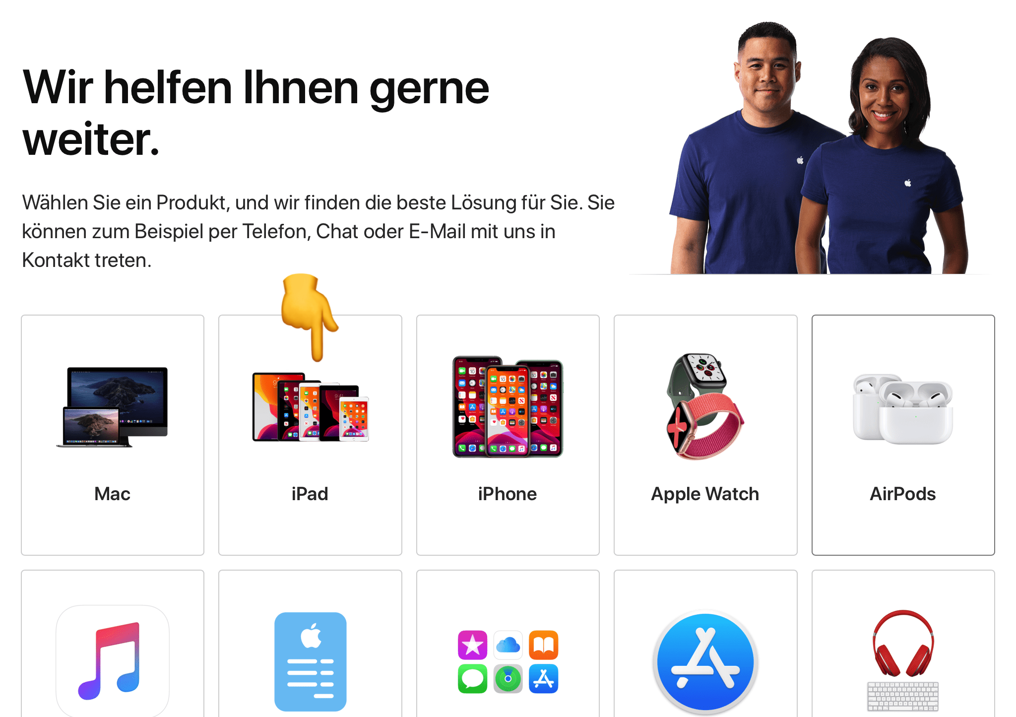 위의 이미지를 클릭해 Apple Support 페이지로 가서 서비스받을 제품인 아이패드 iPad를 선택한다.