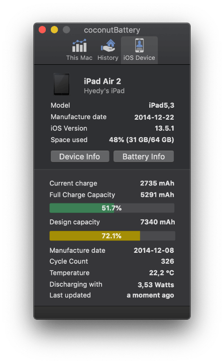 결과는 안전빵인 72%가 나왔다. 야호! 그런데 혹시나 하고 한 번 더 체크해봤더니 갑자기 82%.. 뭔가 이상하다 싶어 한 번 더 해봤더니 계속 올라서 80% 대가 나왔다. 이게 뭔가 싶고 불안했지만 예약 시간이 다가오니 어쩔 수 없이 닫고 애플 스토어로 향했다. (지금 아이패드 에어 2 배터리를 다시 확인해보니 81%가 나온다.)