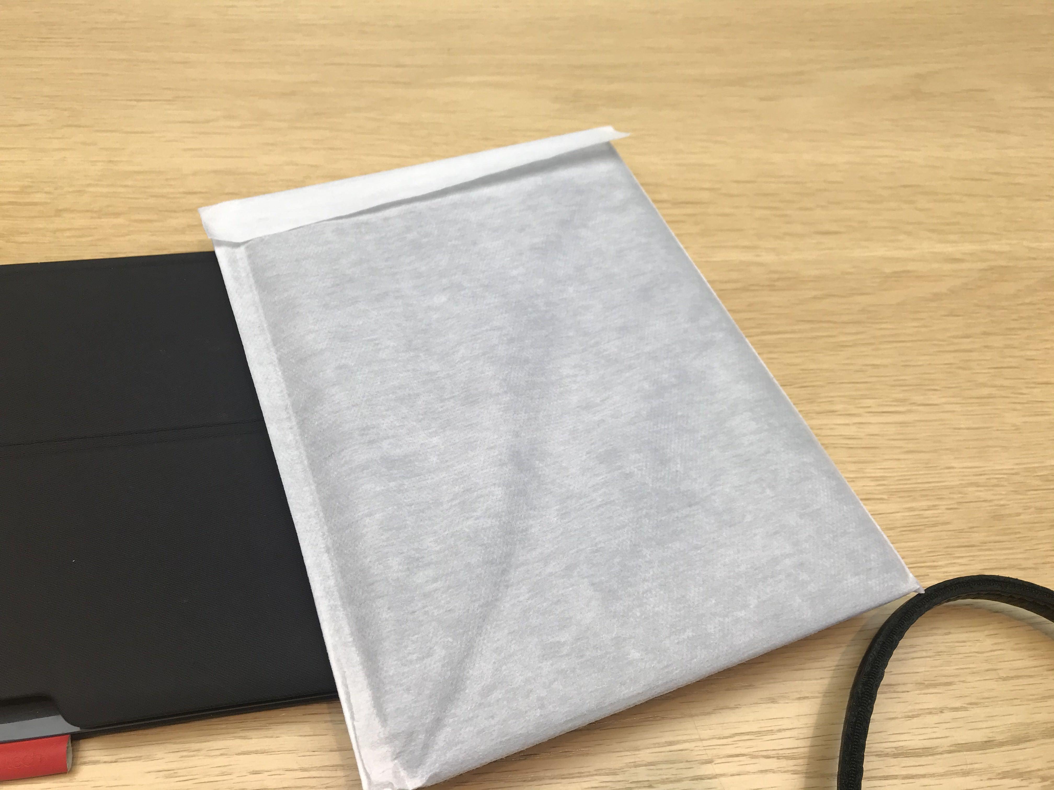 앉아서 기다리고 기다리니 직원이 왔다. 꽤 오래 기다려야 했던 월요일보다는 빨리 직원을 만났다. 아이패드를 가져왔다며 백업은 했는지, 나의 아이패드 찾기 기능은 껐는지 등등을 물어보고 리퍼 제품을 건네주었다. 박스 안에서 꺼낸 아이패드는 이런 부직포 백에 달랑 들어있었다. 확인 후 쓰던 아이패드를 건네주려 하는데 아예 초기화를 시키고 달래서 그 자리에서 초기화를 시켰다.