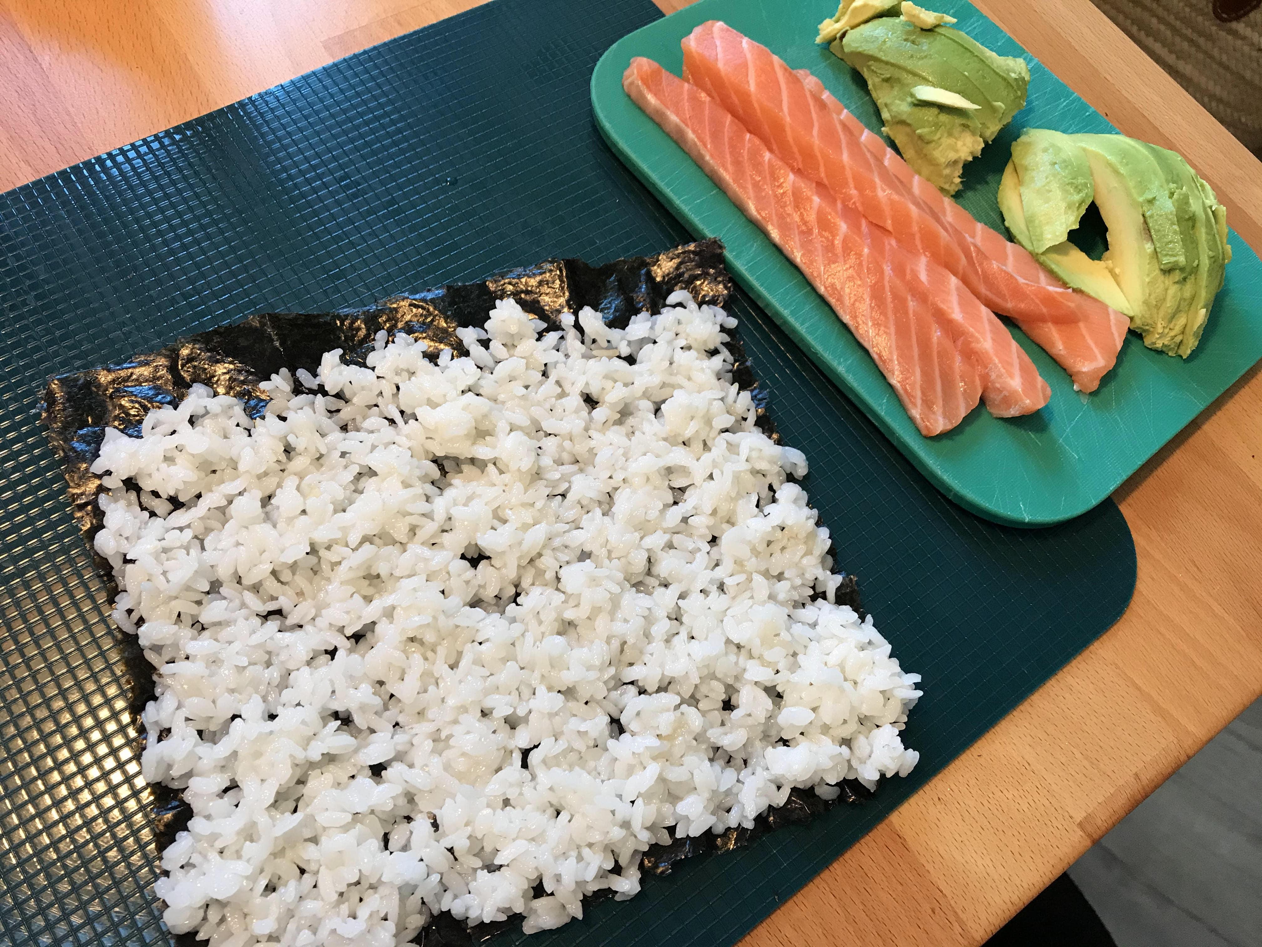 연어도 사 왔겠다 연어 초밥과 롤 만들기를 시작했다.
