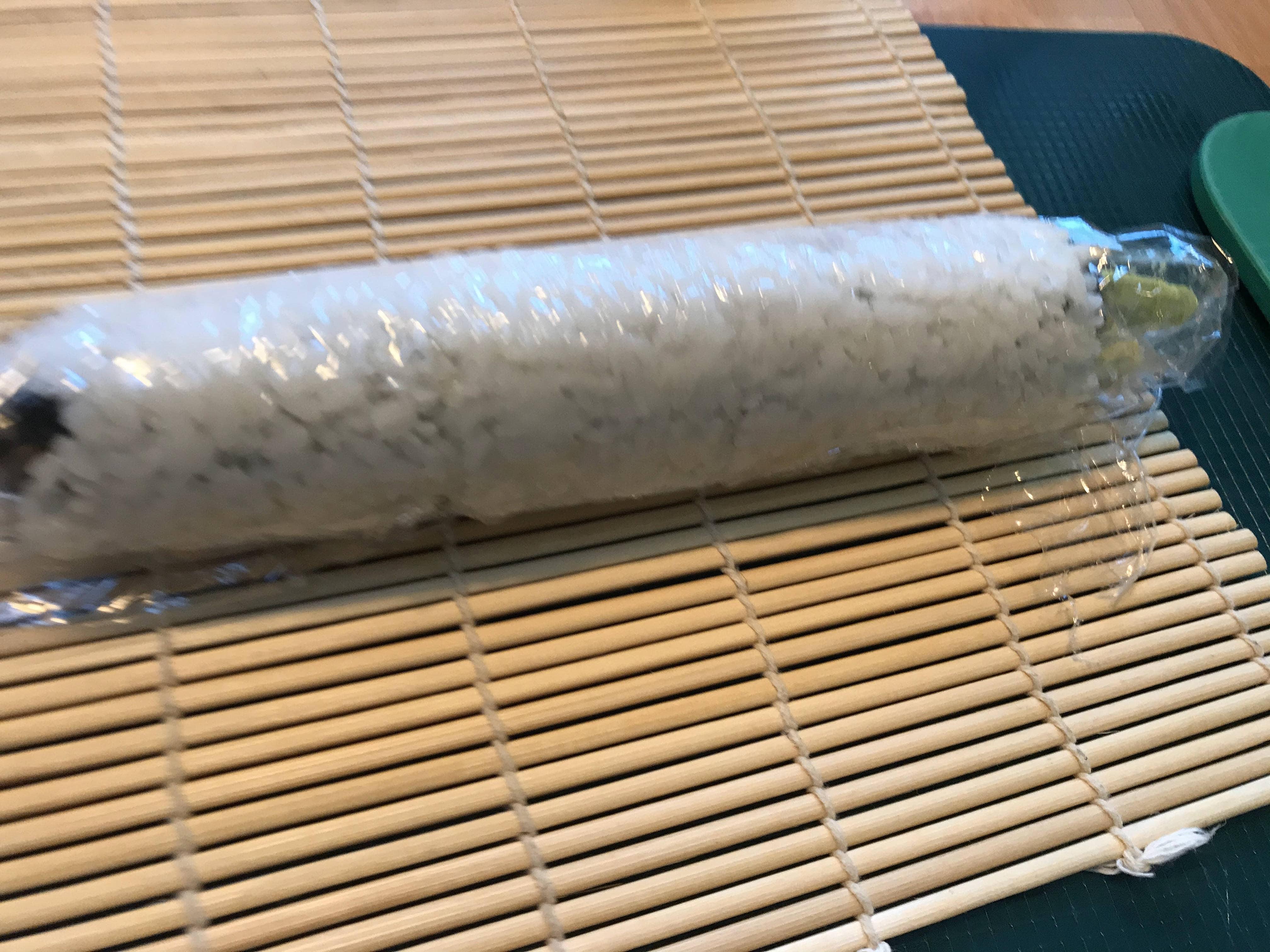 첫 번째 롤! 밥이 너무 많다. 평소에도 초밥과 달리 롤은 한 조각만 먹어도 너무 배가 차기 시작하는 느낌이라 별로 안 좋아하는데 내가 만든 롤은 밥이 너무 많아서 딱 봐도 내가 별로 안 좋아할 것 같았다.