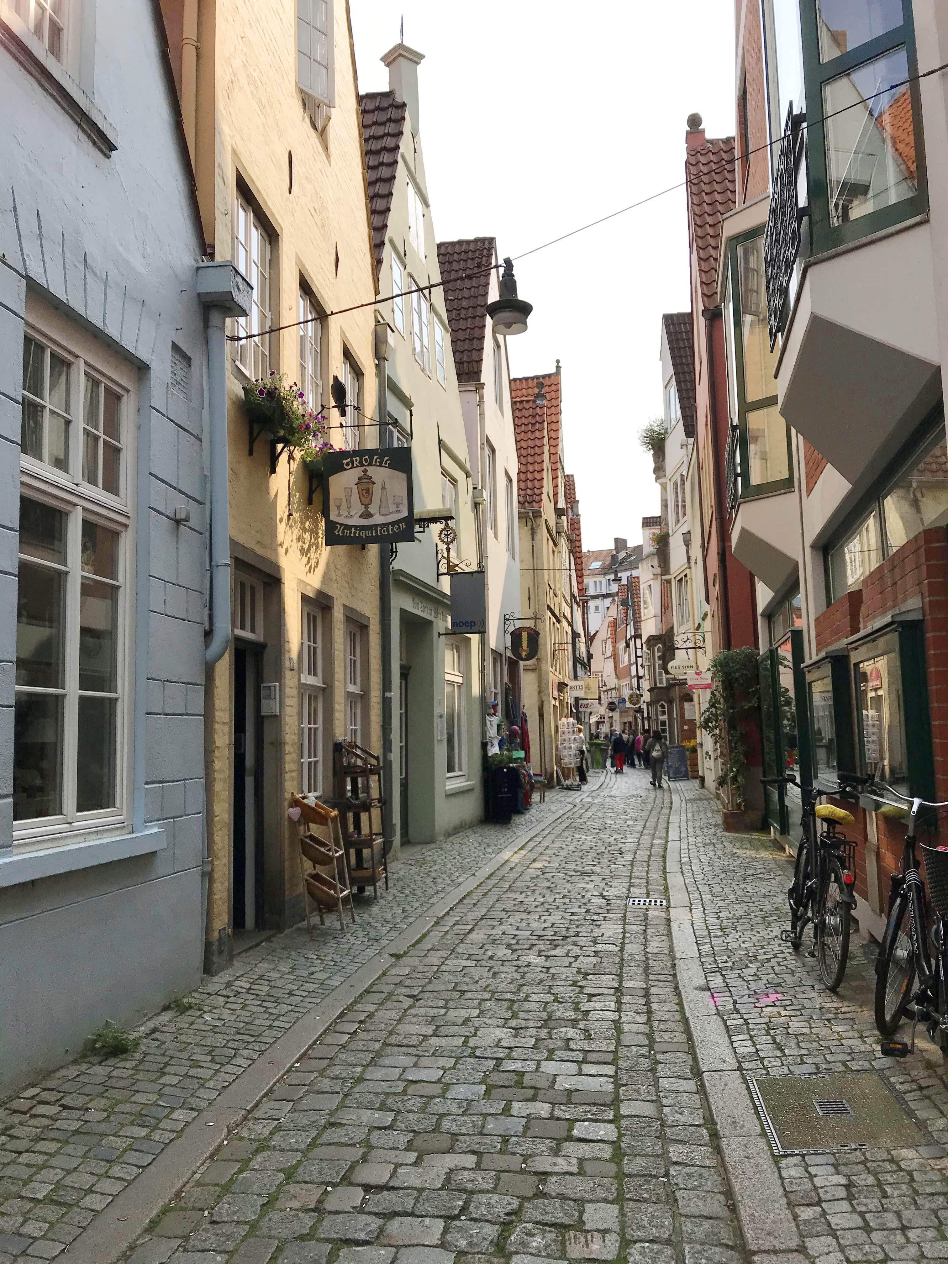 맨 처음 어디로 여행갈 지를 정할 때 Arne가 브레멘을 말했을 때 나는 좀 시큰둥 했다. 그러자 Arne가 브레멘 가야한다며 아주 귀여운 건물들이 가득한 사진을 보여줬는데 거기가 바로 Schnoor였다. Schnoor는 브레멘에서 유일하기 중세 시대 건물들을 보존해놓은 구역으로 좁은 골목들을 따라서 귀여운 간판을 가진 아기자기한 건물들이 줄지어 있는 곳이다.
