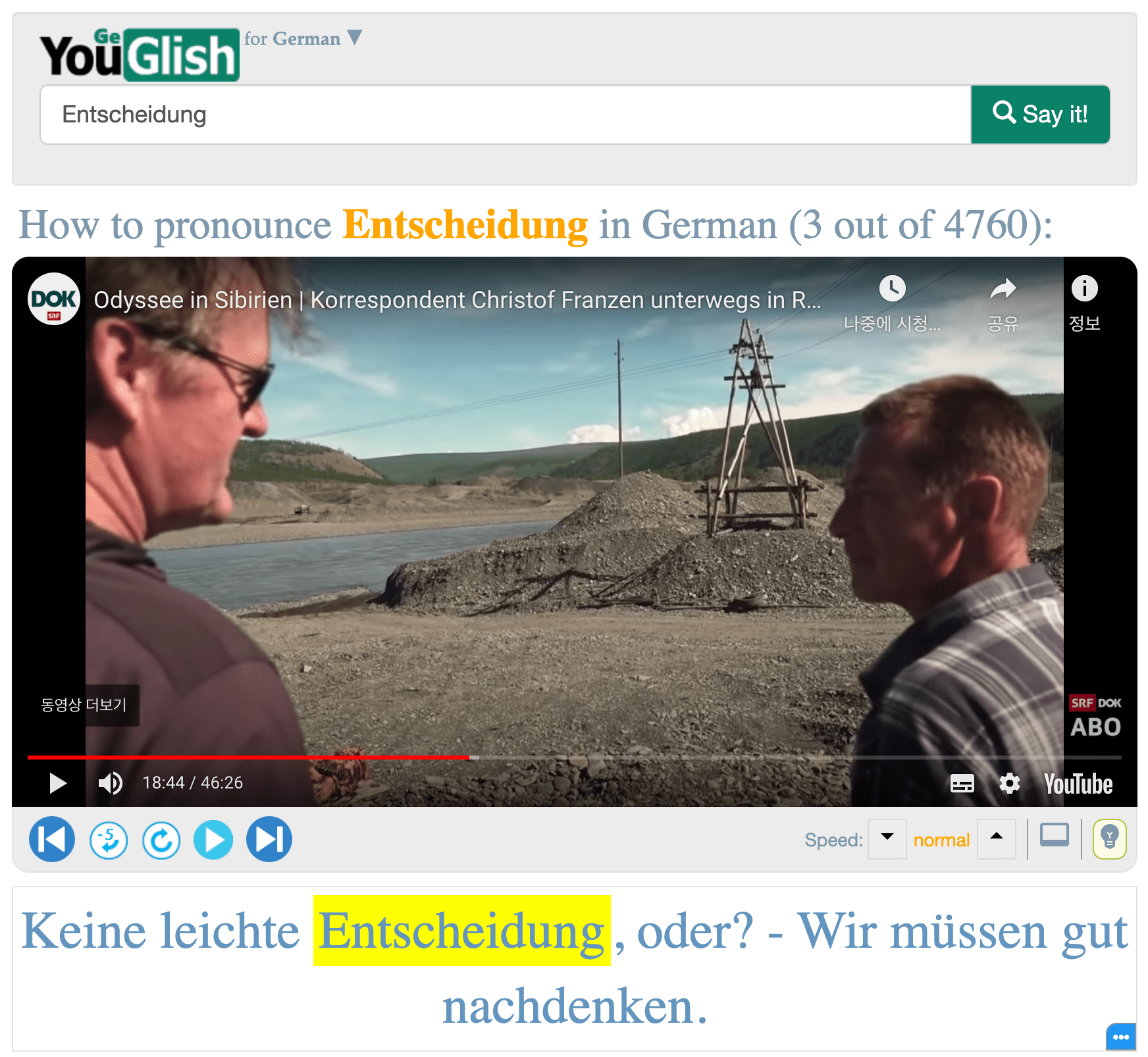 | 독일어 발음도 듣고 문장도 배울 수 있는 Youglish