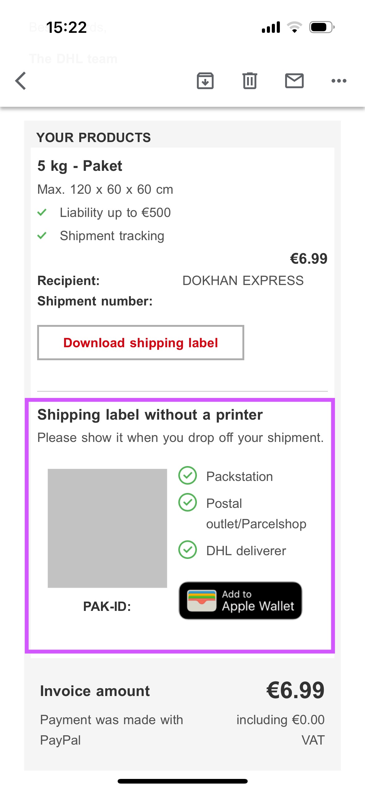 출력한 송장을 왼쪽에다가 붙이고 오른쪽에는 독한 배송으로 보내는 거라서 발송인과 수취인을 따로 적어서 붙였다. 근처에 우체국이 없어서 DHL 파켓 샵으로 갔다. 점심시간에 가니 사람이 꽤 있어서 한참 기다렸는데 가서 택배를 보여주니 바코드를 몇 번 찍고 바로 접수가 되었다. 한 3분 걸렸으려나..? 직접 가서 했으면 거기서 또 종이 가지고 주소 적고 확인하고 앞에서 기다리니까 허둥지둥 대고 오래 걸렸을 텐데 인터넷으로 접수하니까 간단하고 가격도 저렴해서 훨씬 좋다. 독일 내 택배는 다들 온라인으로 접수하는 걸 추천한다!!