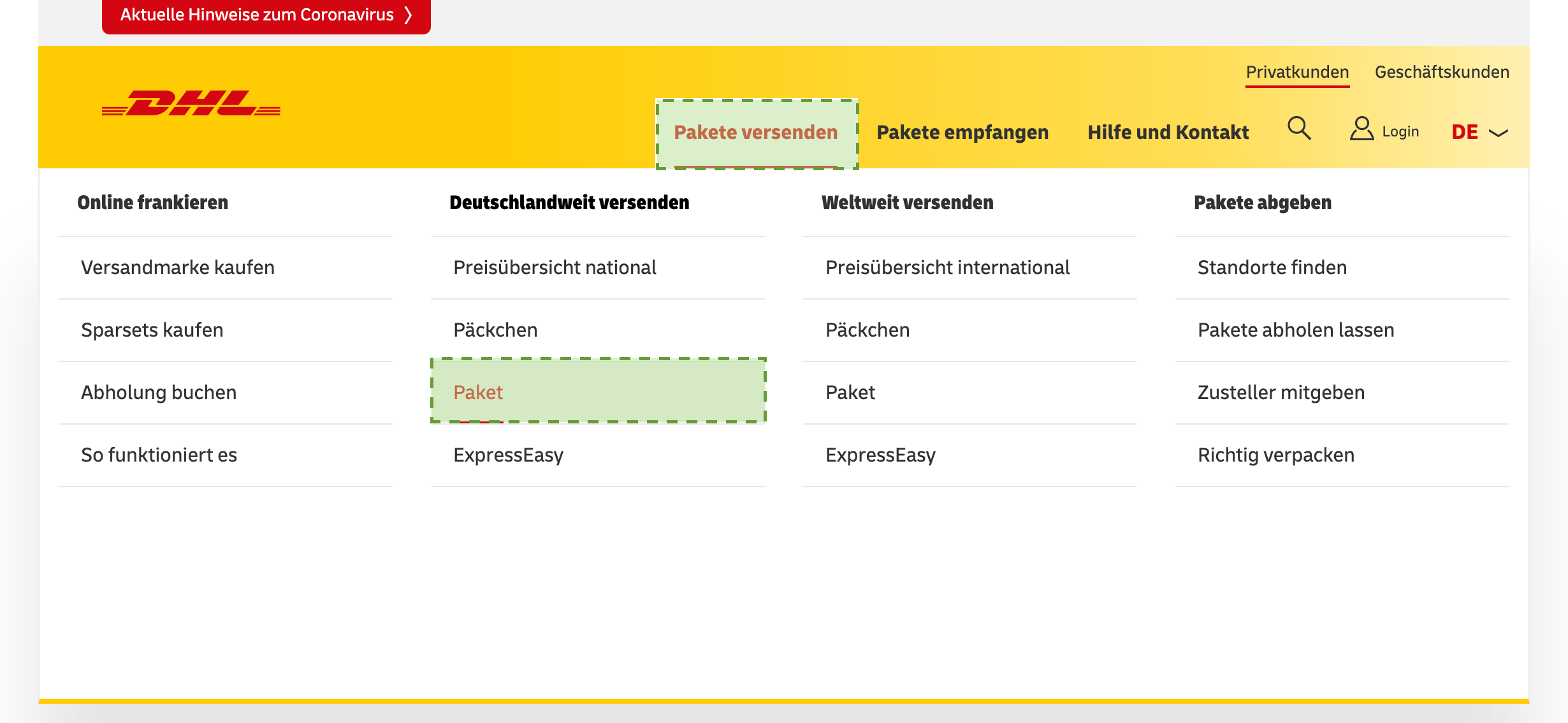 1. DHL 홈페이지 들어가서 Pakete versenden > Packet