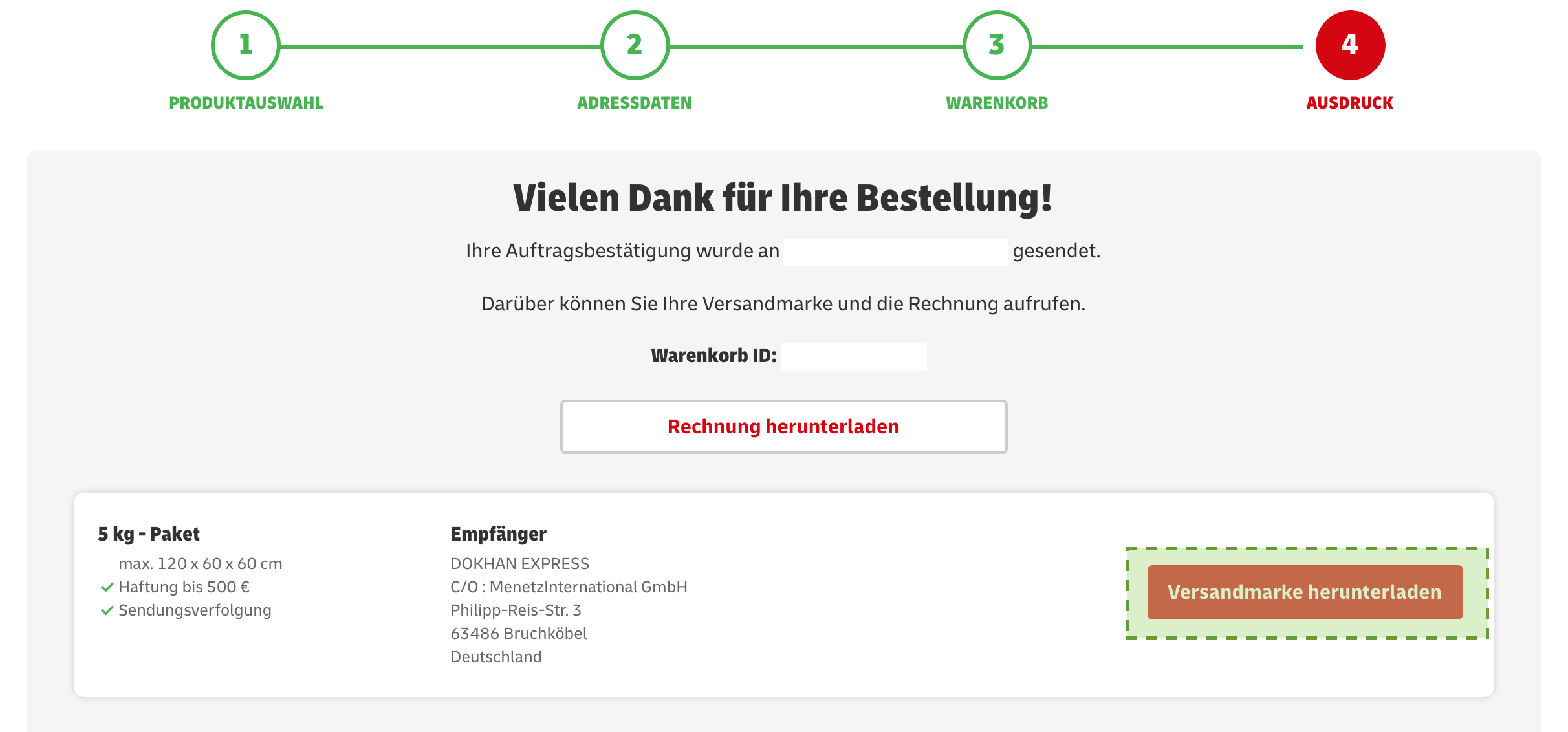 Versandmarke herunterladen을 누르면 pdf로 된 송장이 다운로드된다. 이걸 출력해서 택배 박스에 붙여준다.