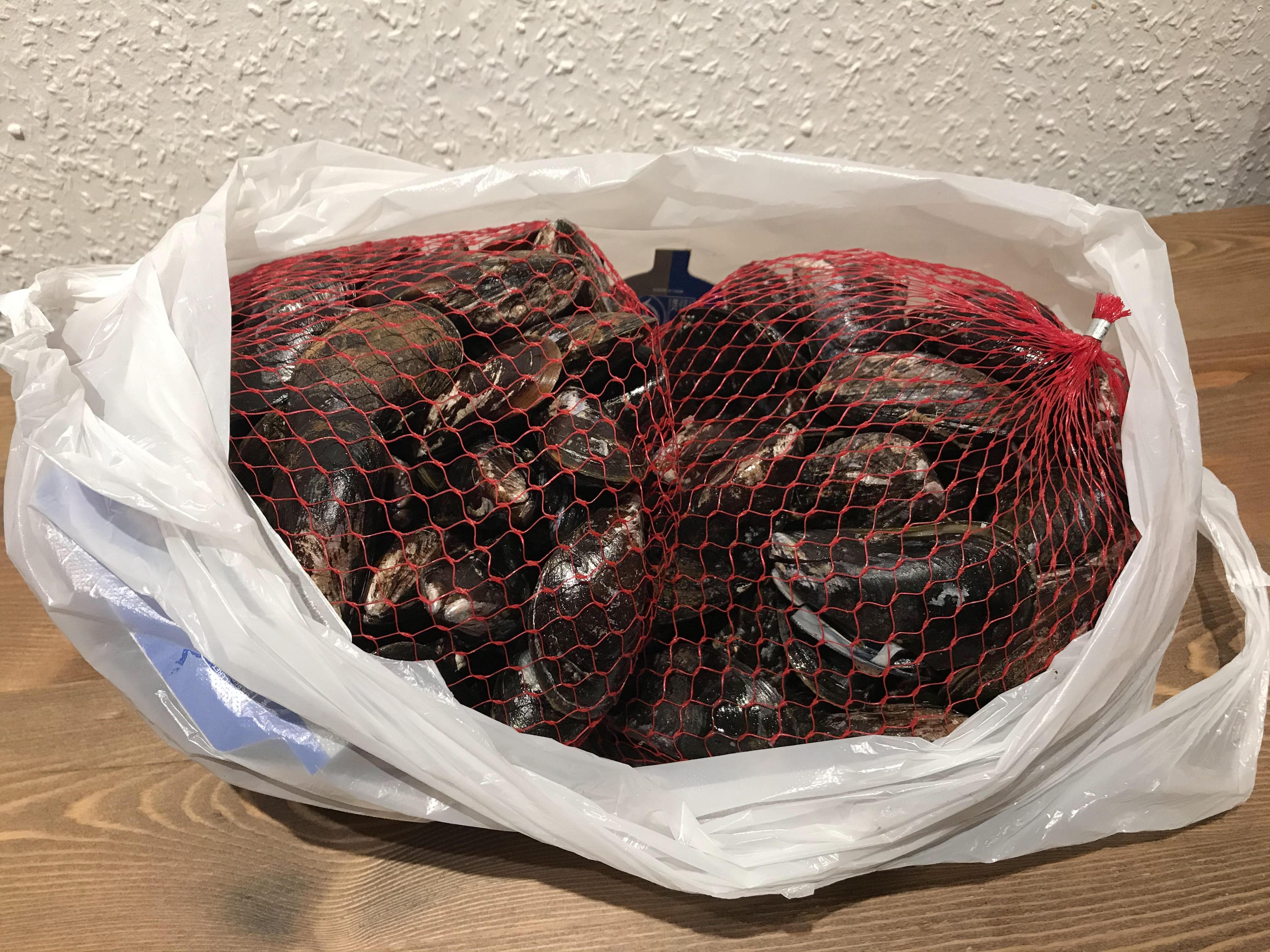 양도 엄청 많다. 1팩에 1kg인가 그랬는데 Arne가 2팩을 사 왔다. 엄청 많아 보이는데 손질하면서 깨진 거, 죽은 거 골라내고 나면 좀 줄어든다.