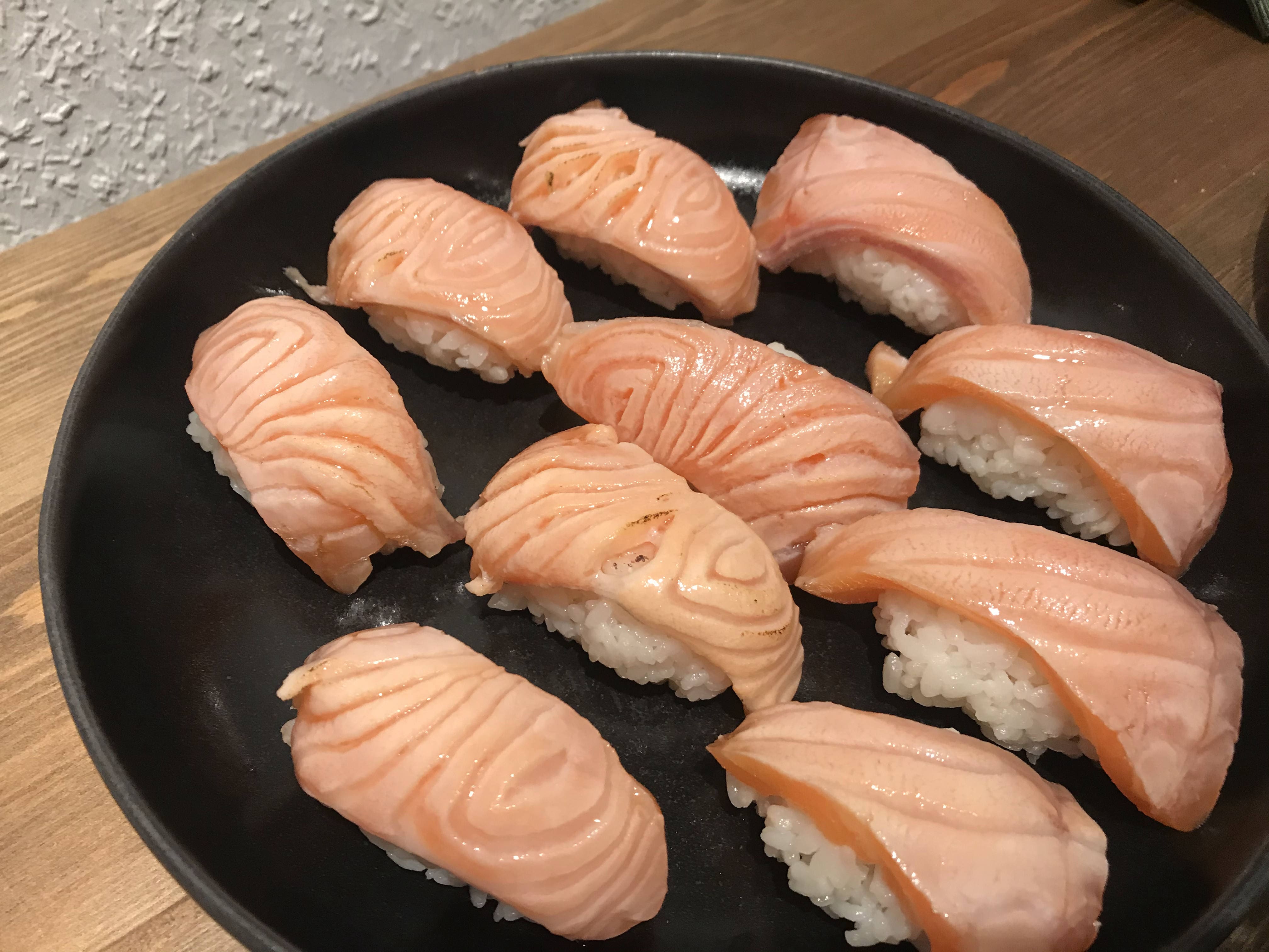 연어 다 썰어서 올리고 난 다음에 토치로 익히기!!! 🔥간장에 찍어먹어도 되지만 데리야끼 소스를 만들어서 발라줬다. 간장 반 데리야끼 반 이렇게 먹었는데 Arne도 나도 간장보다는 데리야끼 소스에 한 표! 달달한 게 기름진 연어랑 잘 어울렸다. 밥이 좀 많아서 다음엔 밥 양을 좀 줄여서 해야겠다. 손에 잡을 땐 작아 보이는데 입에 들어가면 왜 이렇게 큰 지;;
