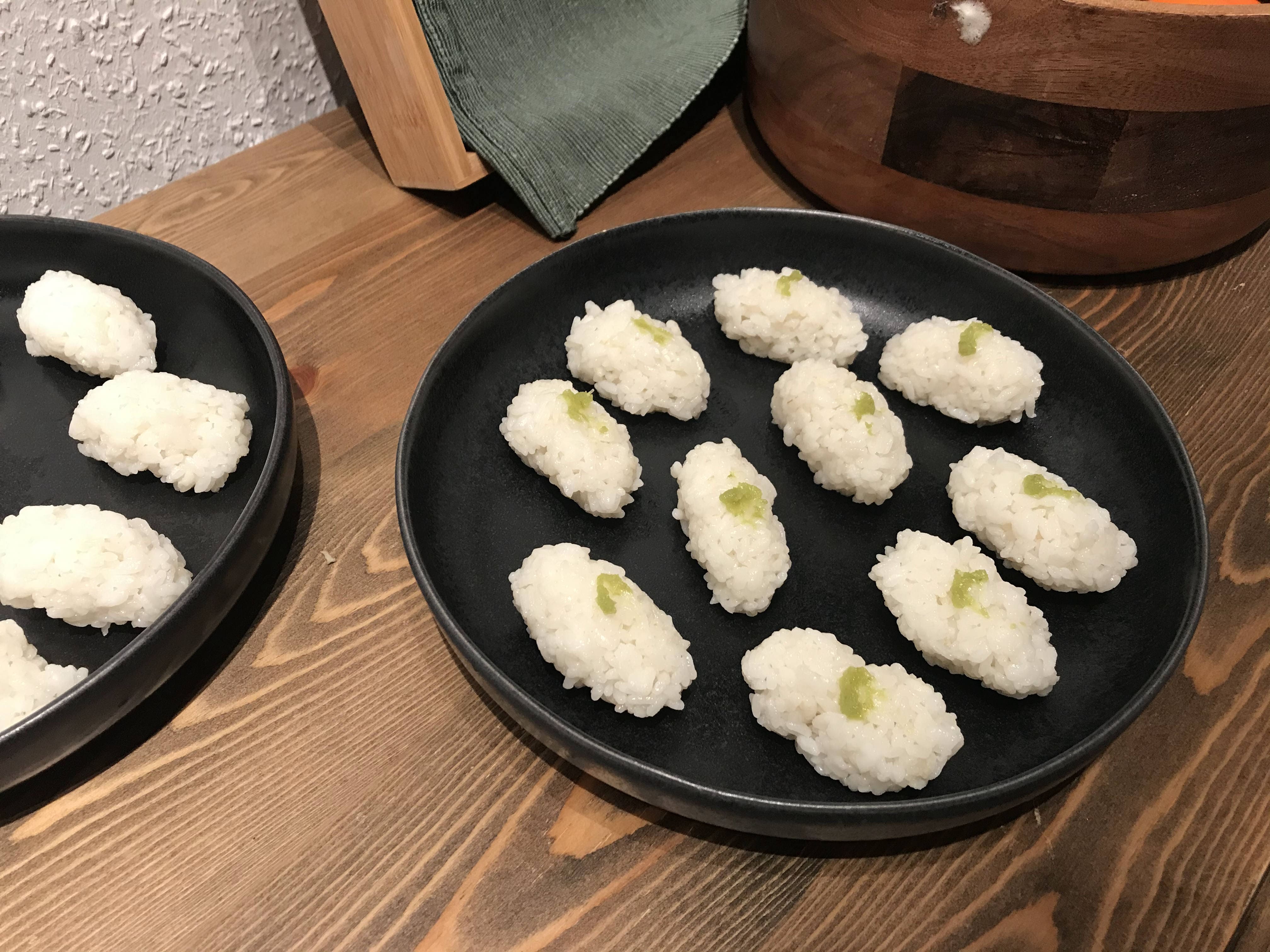 고추냉이가 올라간 게 내 밥이고 없는 게 Arne 밥이다. 이 고추냉이는 별로 맵지도 않은데 Arne는 별로란다.