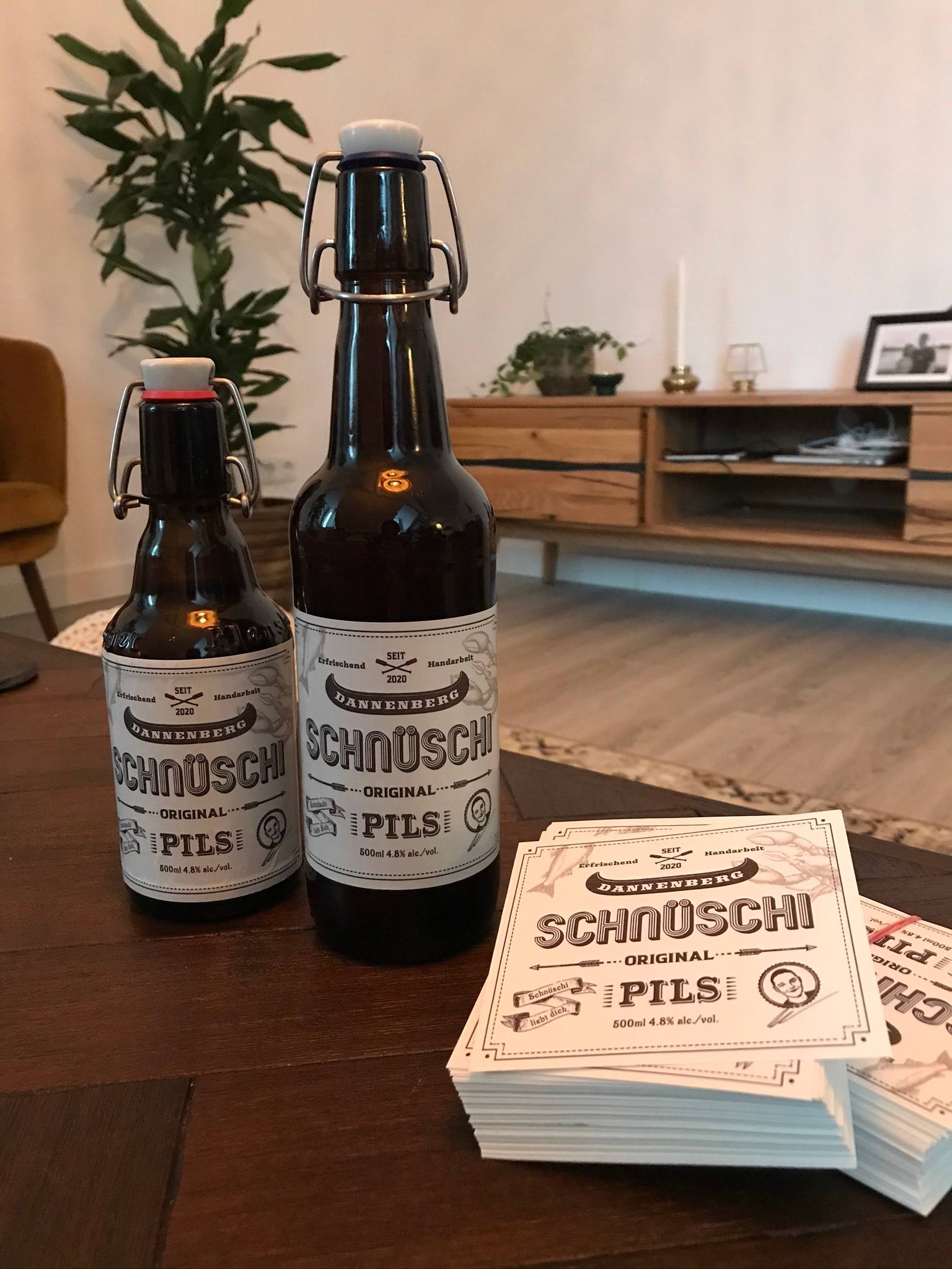 Schnüsch는 Arne 남동생의 오래된 별명이다. 그래서 왼쪽 아래에 작게 적힌 Schnüsch liebt dich는 맥주가 당신을 사랑한다는 말도 되지만 남동생이 당신을 사랑한다는 뜻이기도 하다 🤣 Arne 남동생의 수제 맥주는 저기 작은 병에 담겨있어서 작은 병에도 붙여봤는데 너무 크다. 우리가 주문한 스티커 크기는 9x10이고 500ml 병(오른쪽)에 딱 맞다.