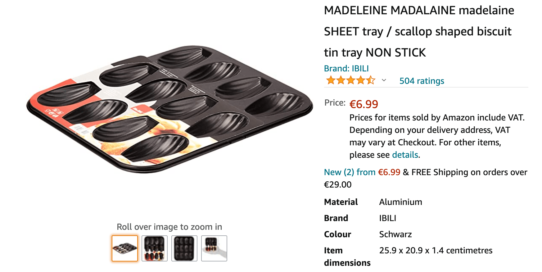 이 마들렌 틀을 받고는 너무 얇아서 깜짝 놀랐다. A4 Brief 포장돼서 올 정도로 얇다. 틀 깊이가 얕으면 배꼽이 잘 안 올라온다던데.. 따흐흑.. 황급히 아마존에 다시 들어가서 배꼽이 잘 올라왔나 사람들 리뷰를 확인했다. 사진까지 첨부한 몇 개의 리뷰가 있었는데 놀랍게도 모두 다 배꼽이 아주 예쁘게 잘 올라와있었다. 흠 후기를 보니 괜찮아 보이는데 한 번 시도해보는 걸로 🧐