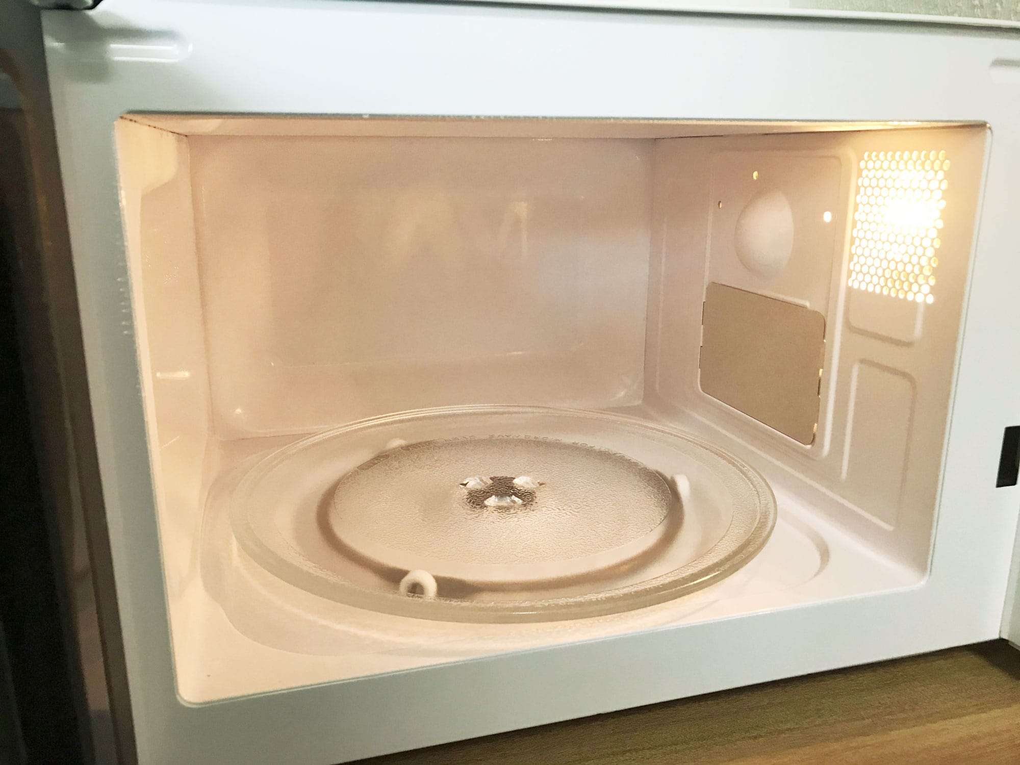요기가 바로 재정비한 팬트리 공간! 주문한 지 며칠 만에 배송이 되어서 받자마자 신나게 준비된 공간으로 넣어버렸다. 커튼도 그렇고 이 주변 공간이 다 흰색이라서 전자레인지도 흰색으로 골랐다.