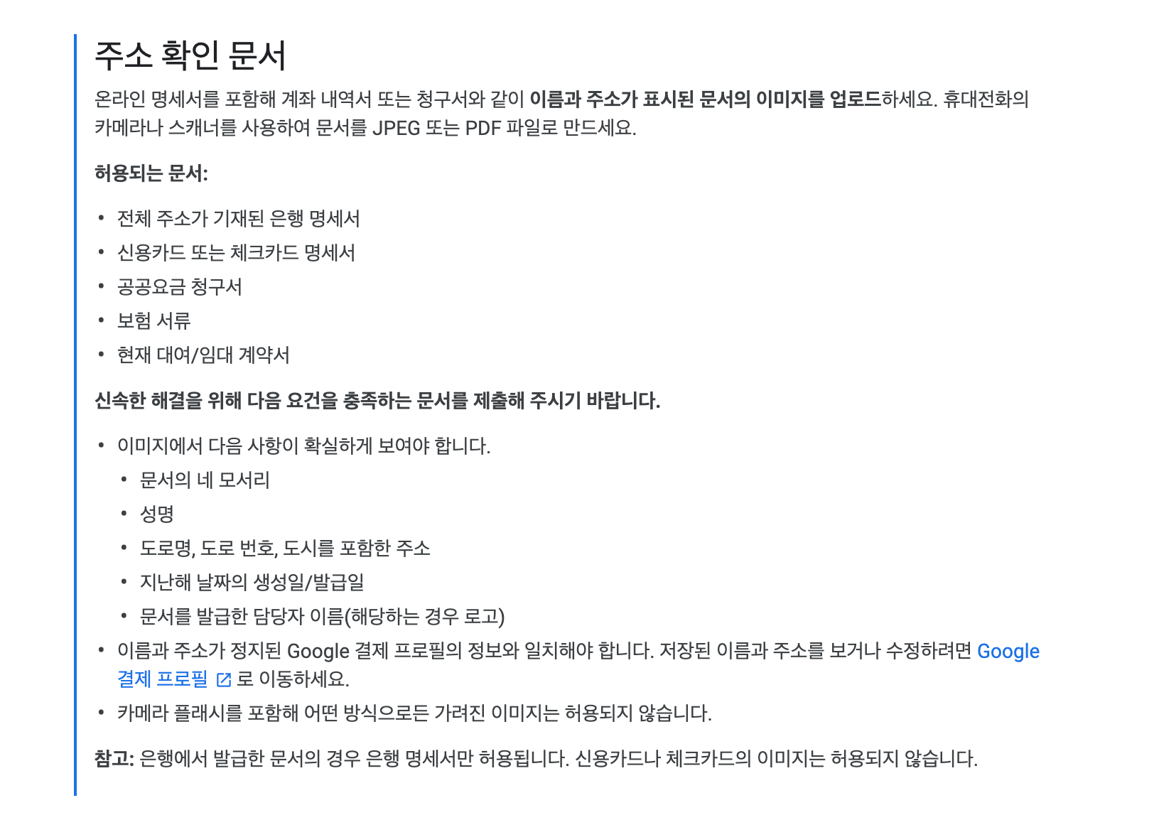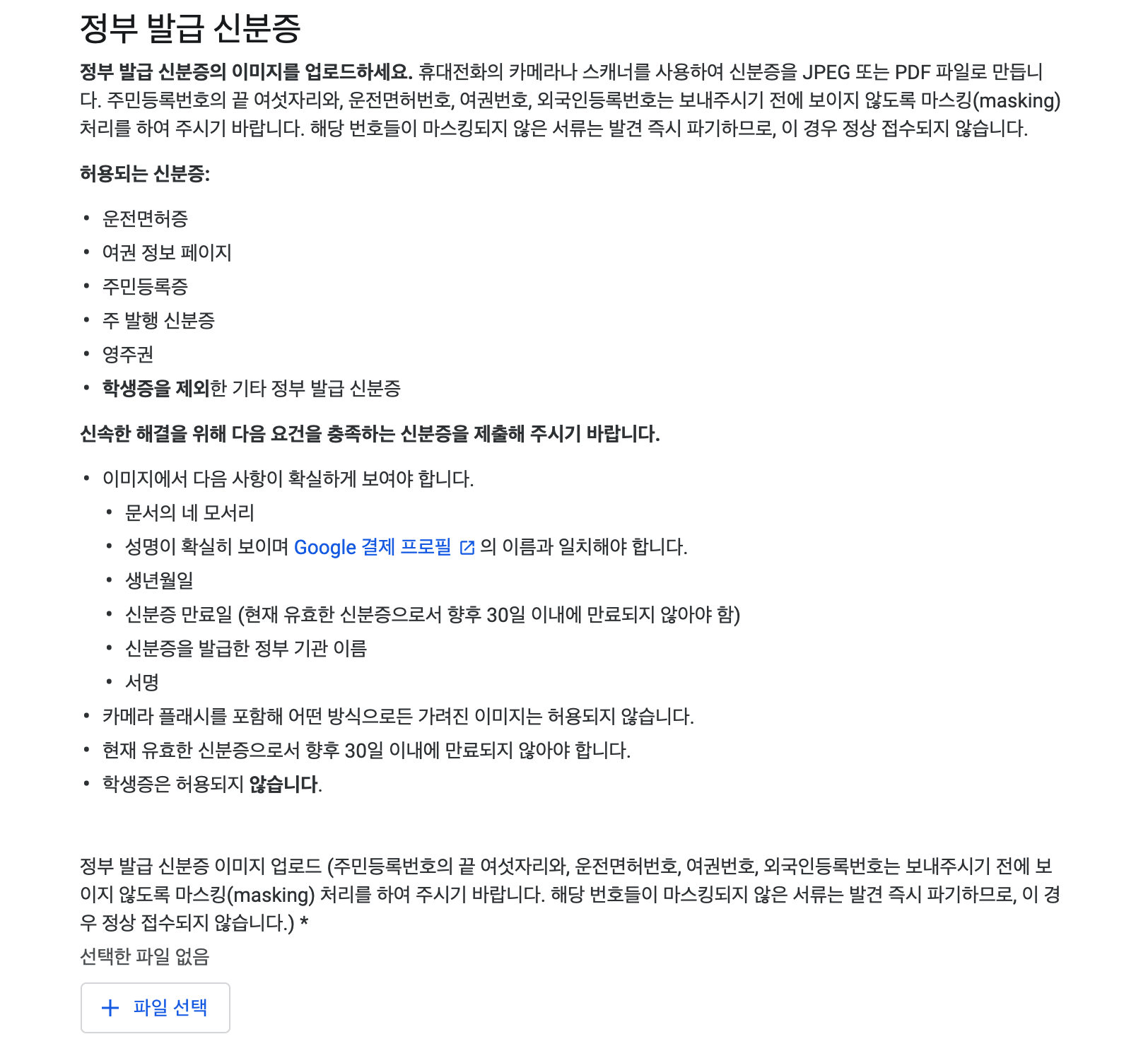 구글 신분증 허용 기준: 운전면허증