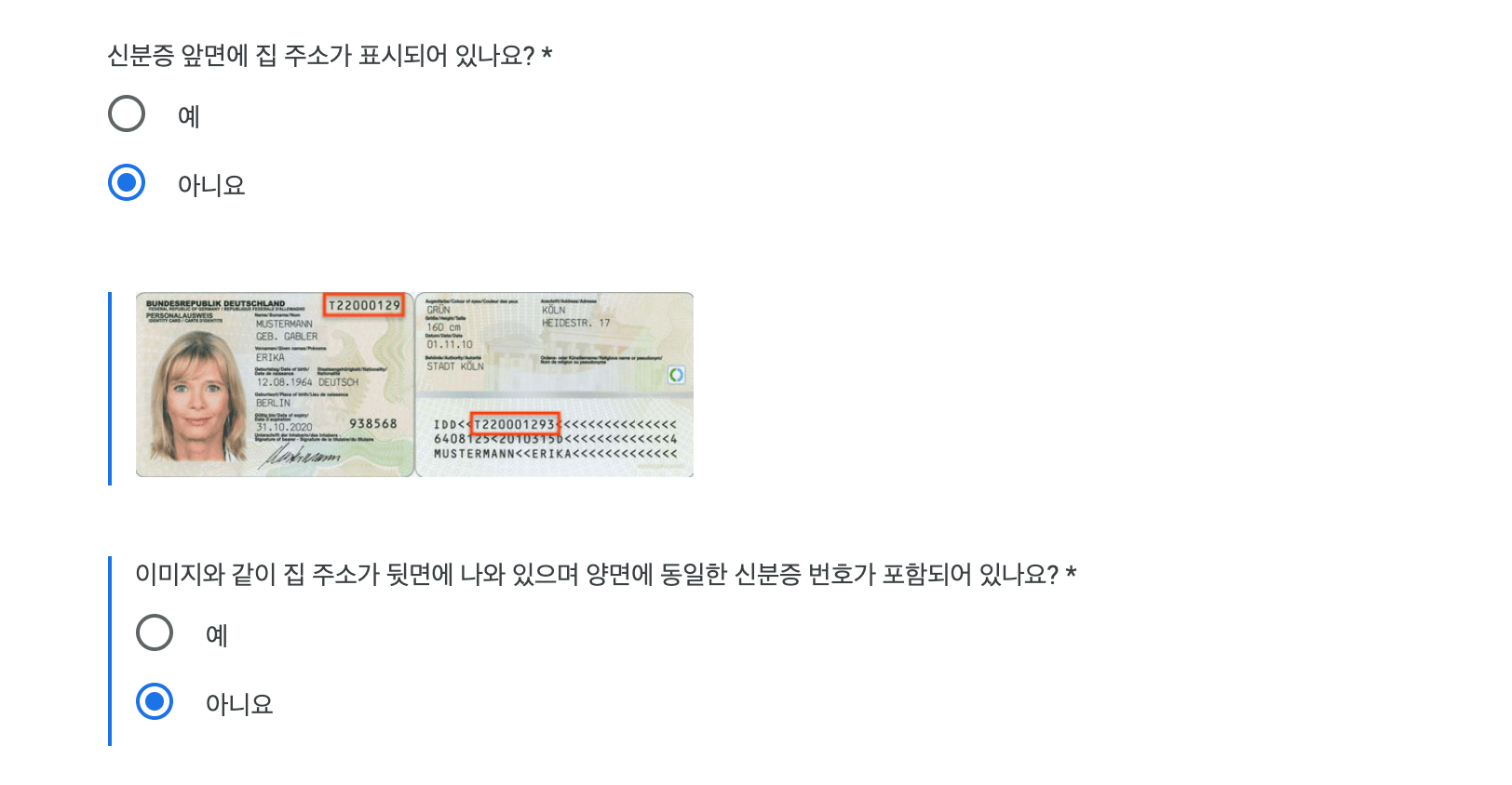 운전면허증도 독일에서 교환해서 없고 주민등록증은 한국에 놔두고 와서 없었다. 한국 가족들한테 주민등록증을 찍어달라고 하면 되지 않냐고 할 수 있는데 최근에 이사를 가서 주민등록증에는 다른 주소가 적혀있다. 그래서 주민등록증도 ❌그럼 남은 게 영주권도 없고 정부 발행 신분증도 없으니 여권뿐이었다. 근데 여권을 업로드할 경우 또 다른 문제가 생긴다.