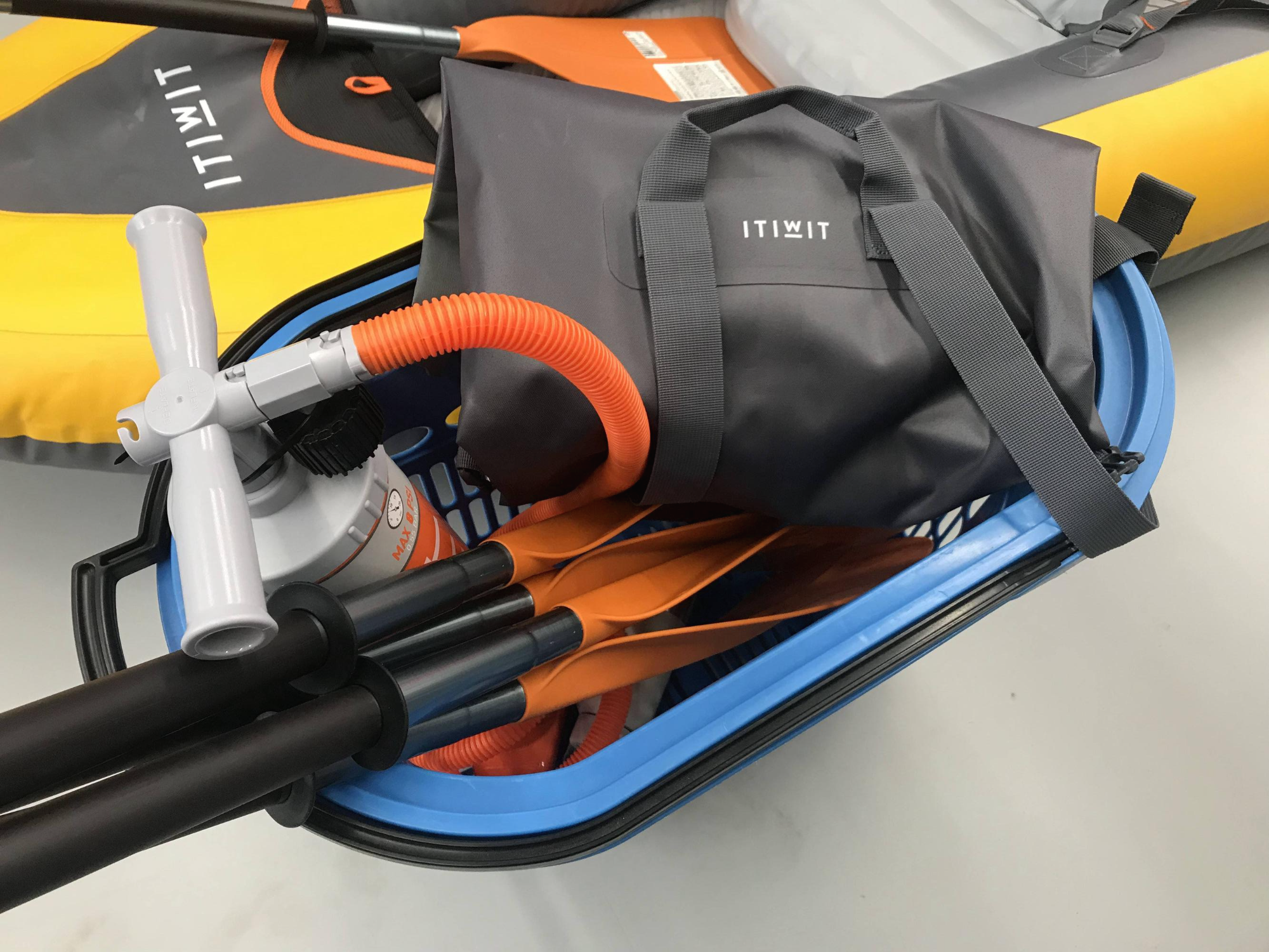 몇 주동안 기다리다가 오스트리아 Decathlon에는 있길래 그거를 주문 해가지고 오스트리아에 있는 친구한테 보내달라고 해야 하나 고민하던 차에 독일 Decathlon에 입고되었다면서 메일이 왔다. 받자마자 바로 구매!!! 🤩 드디어 우리도 카약이 생겼다~~~!!!