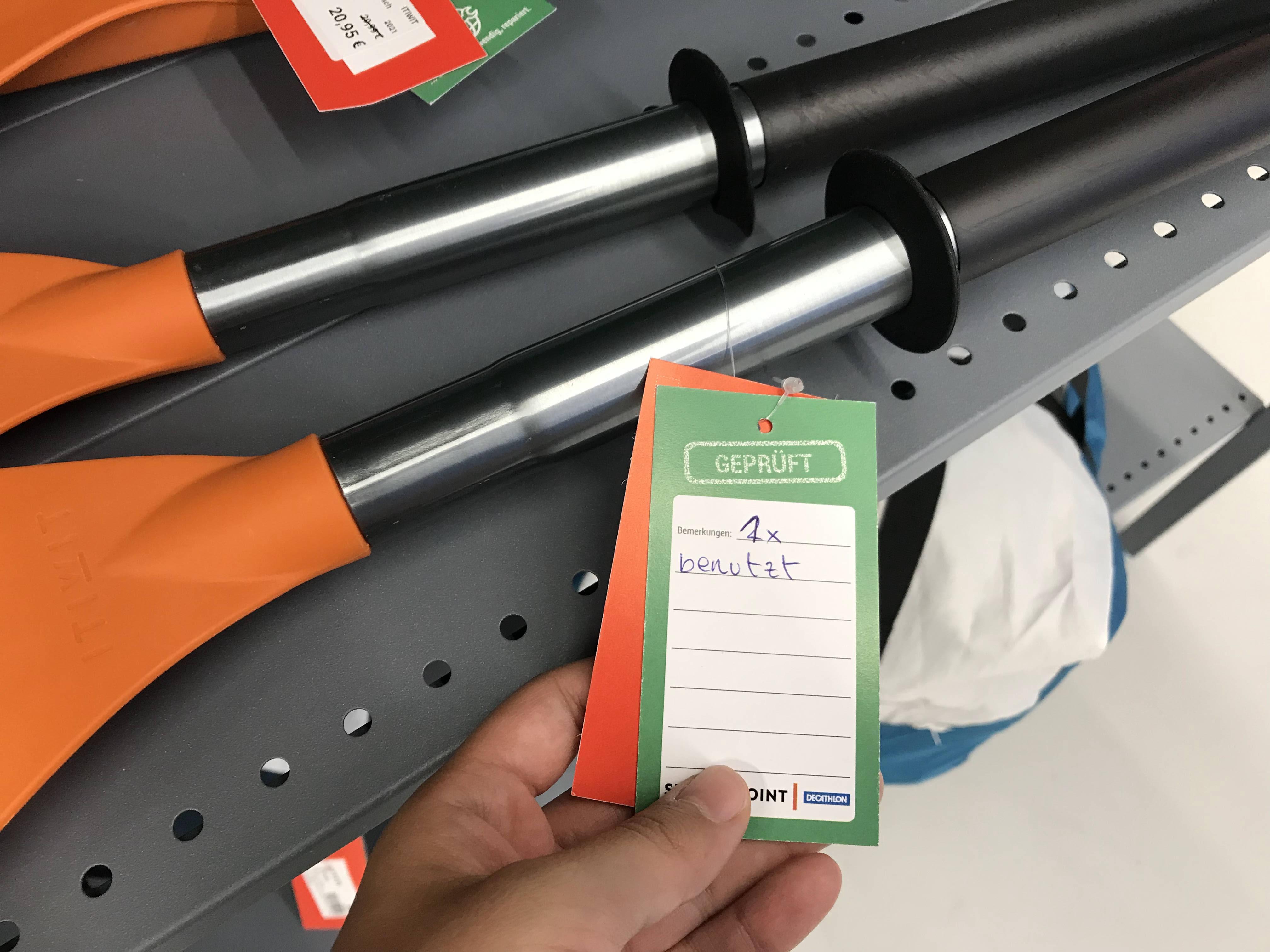 다 담아가지고 이제 계산하려고 하는데 계산대 바로 옆에 반품된 제품들을 할인해서 파는 선반이 있었다. 딱 우리가 사려고 했던 패들 2개가 거기에 들어있어서 새 거는 다시 가져다 놓고 이걸로 샀다. 20유로 아꼈음 😎