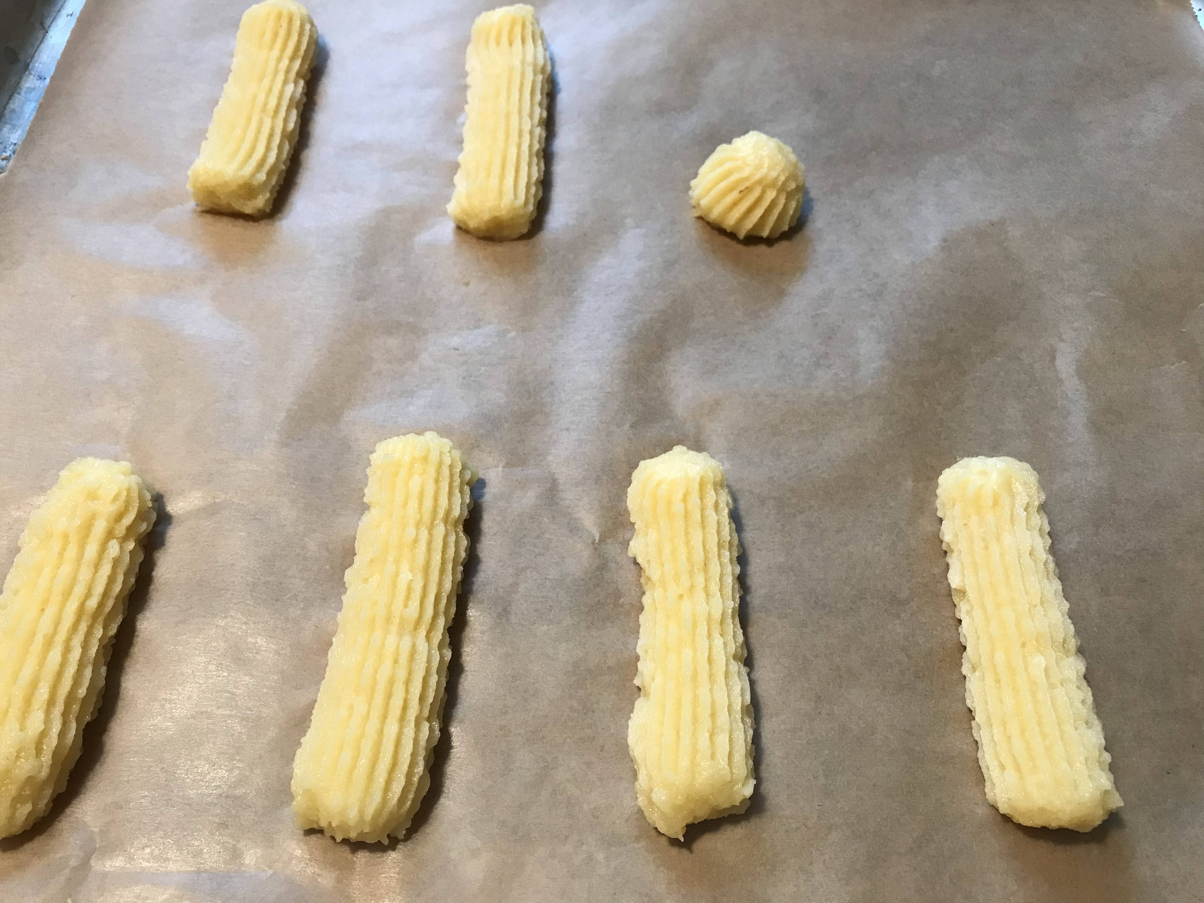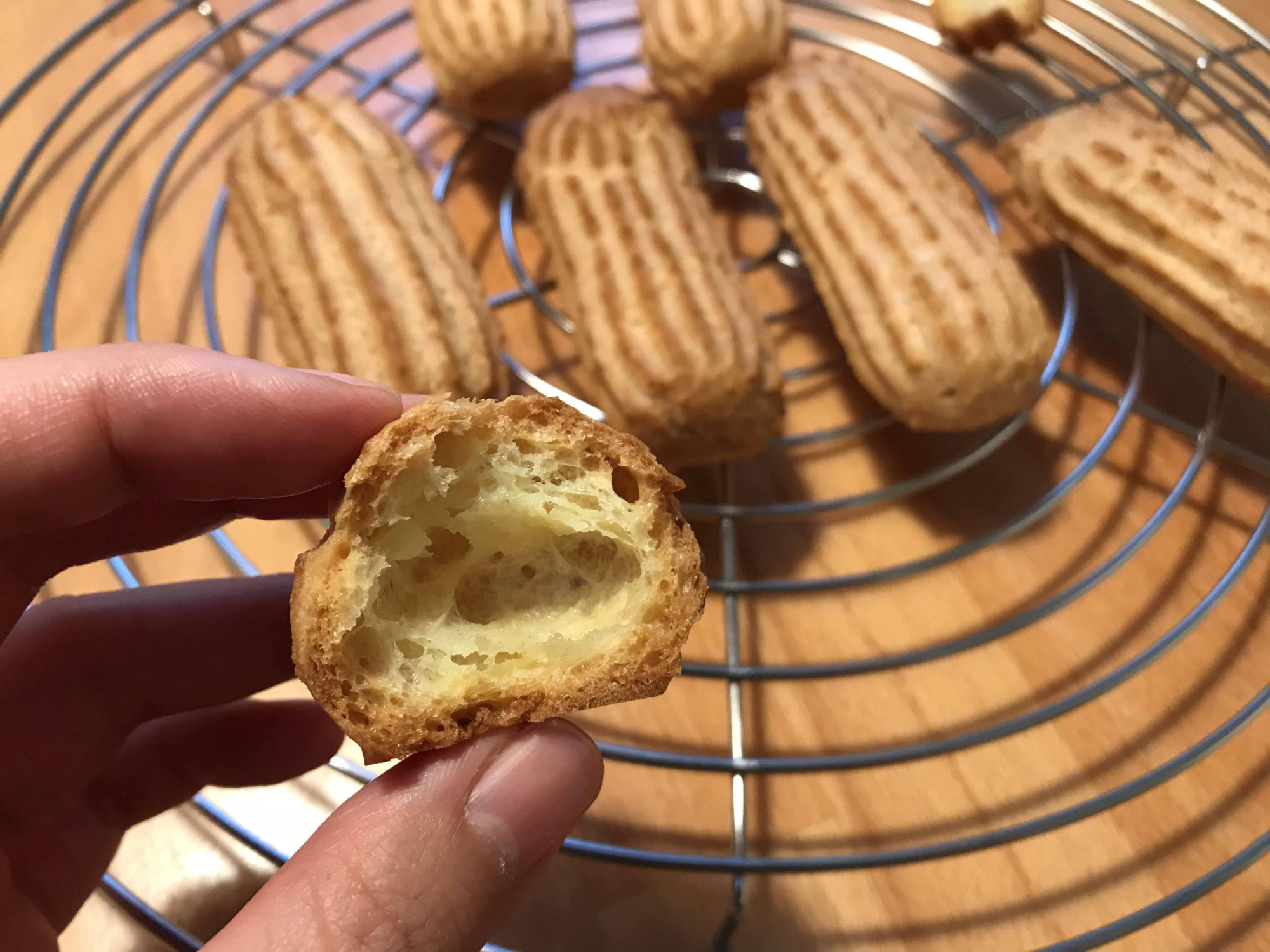 마카롱이나 다쿠아즈랑은 다르게 에끌레어는 유튜브 비디오가 별루 없었다. 그래도 몇 개 보고 따라 했는데 다른 디저트 반죽과 달리 안에가 부풀어야 해서 그런지 도우를 냄비에서 익혀야 했다. 제대로 익히지 않으면 안 부푼다고 해서 2분은 넘게 익혔다. 이렇게 반죽을 만들어 본 적이 없어서 타지 않게 하려면 어려울 줄 알았는데 생각보다 너무 쉬웠다. 재료 다 넣고 그냥 저으면 돼서 마카롱 꼬끄 만드는 거보다 더 쉬웠다. 이날을 위해 큰 깍지까지 샀다. 새로 산 깍지로 짜주고 오븐에 넣으면 끝!