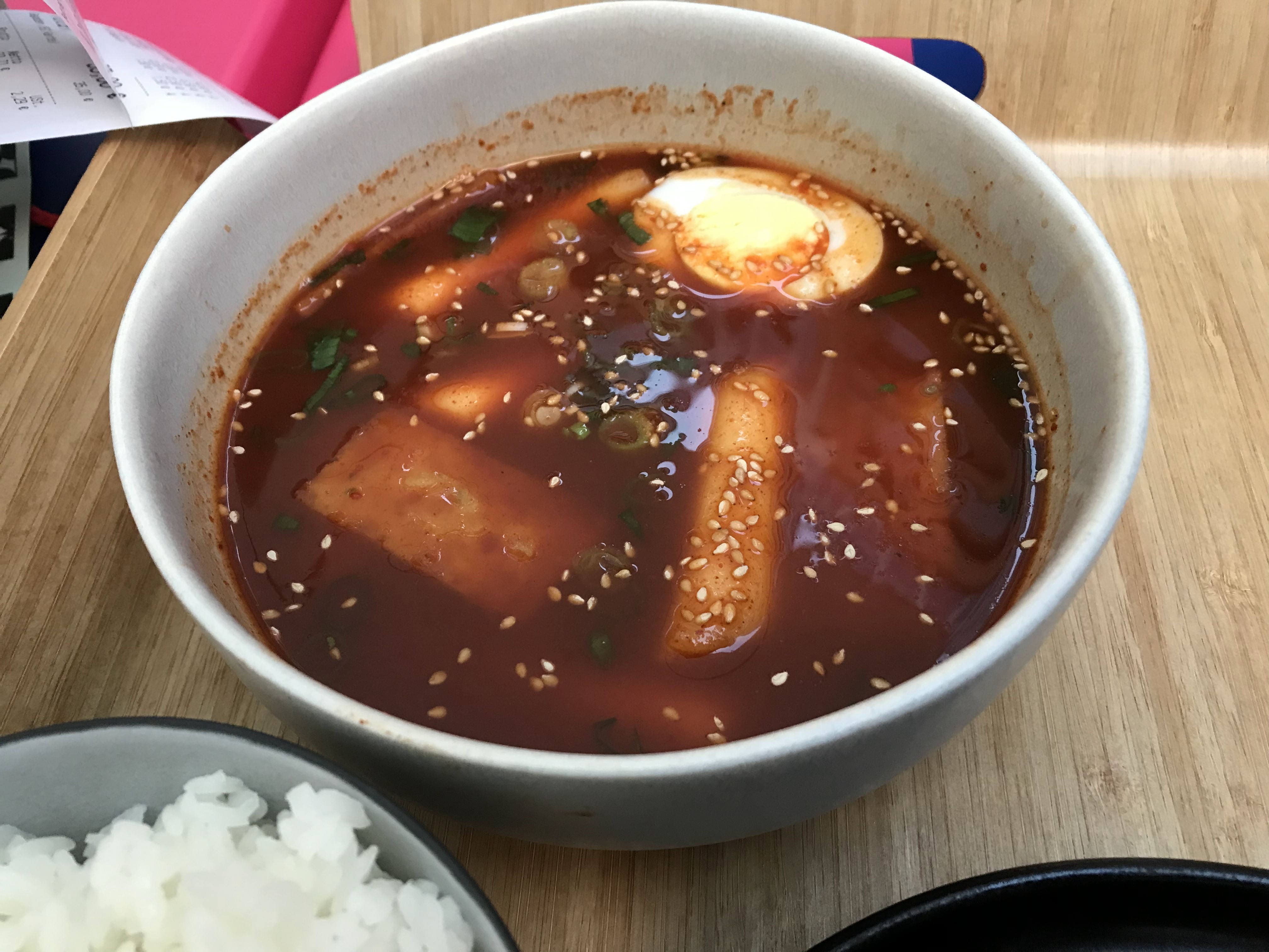 한국말로 컵 떡볶이라고 있길래 주문했는데 컵 떡볶이가 그냥 떡볶이라고 하더라;; 이건 컵이 아니고 그냥 국물 떡볶이 같은데! 밀떡인지 쌀떡인지 모를 이 떡이 쫄깃하고 맛있었다. 김밥도 한 번 먹어봤는데 김밥은 내 스타일은 아니었다. 친구가 참치 김밥은 맛있다는데 다음엔 참치 김밥을 먹어봐야겠다.