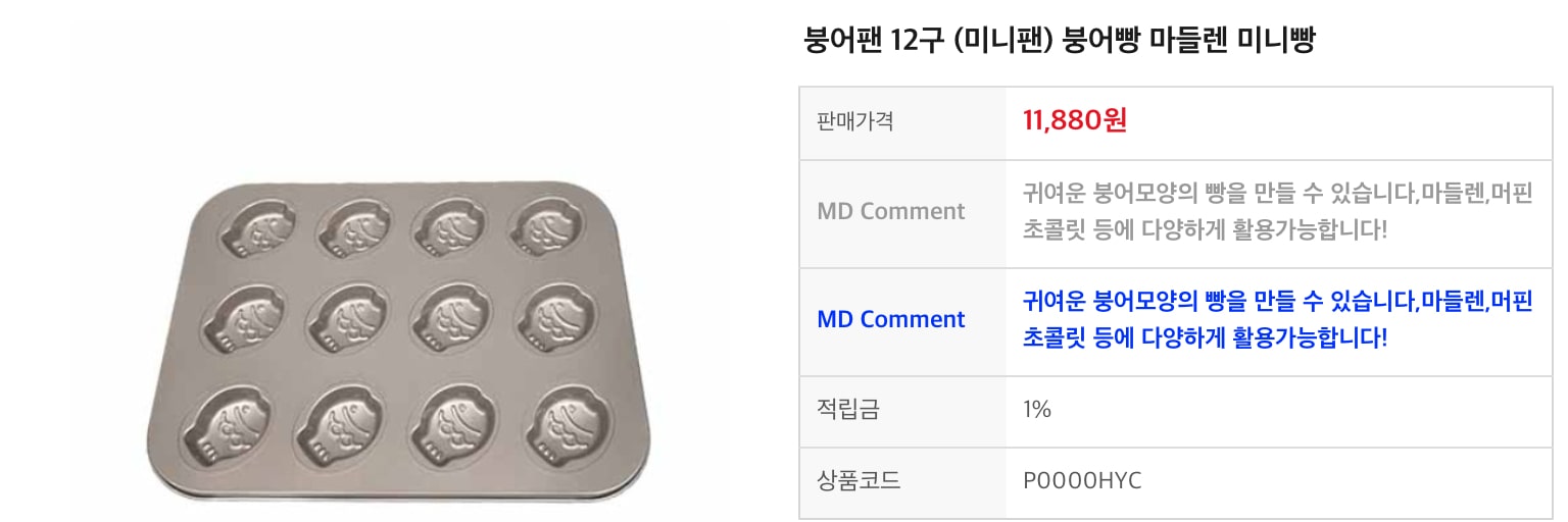 마지막으로 꼭 사오고 싶었던 붕어빵 틀! 마들렌에 필링을 넣어서 굽고 싶은데 일반 마들렌틀은 너무 얕아서 필링을 넣으면 아주 흘러내리고 난리였다. 붕어빵틀은 그래도 깊이가 좀 있는 것 같아서 사왔는데 결과는 아주 흡족스러웠다.
