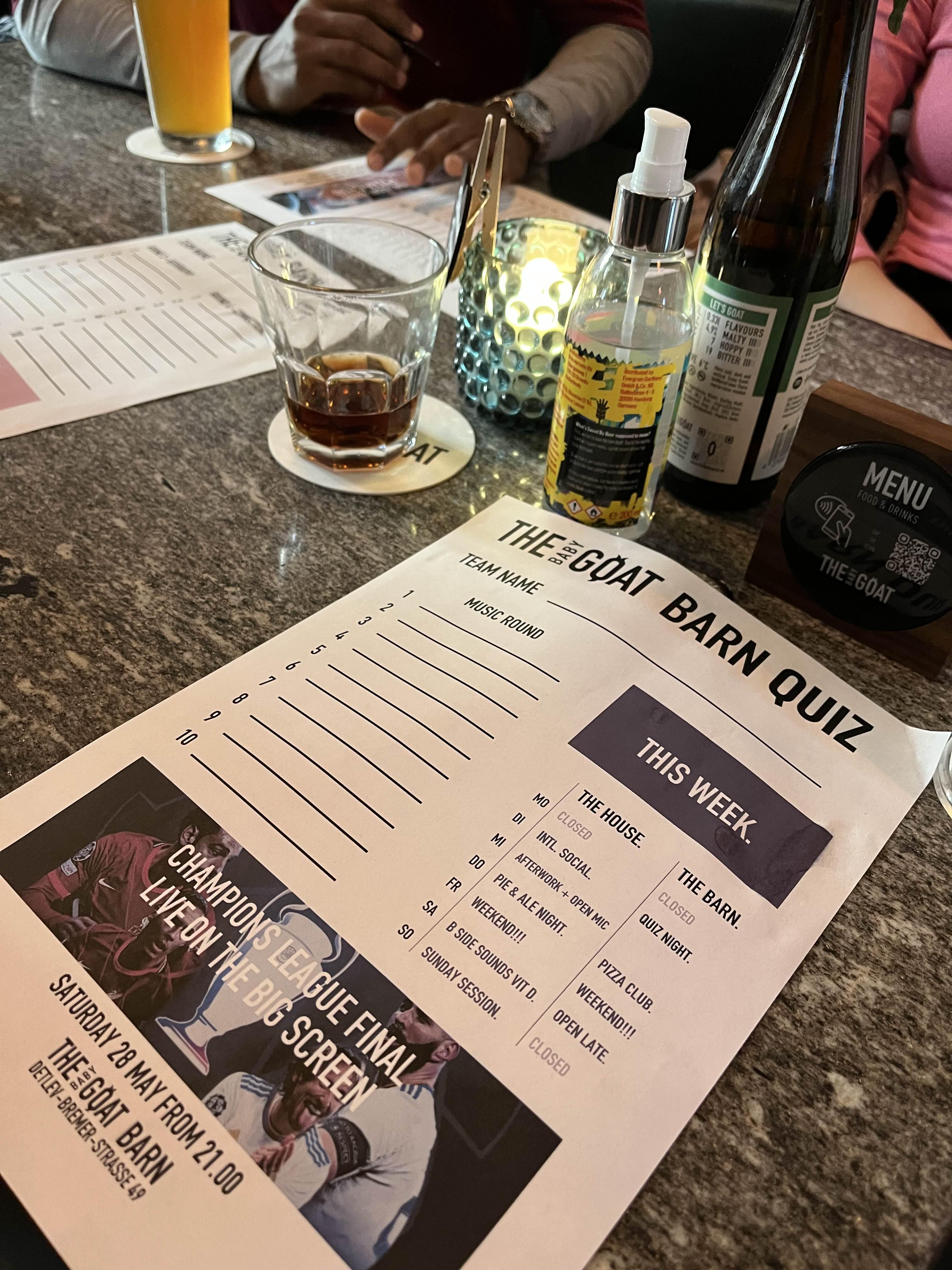 술집에서 각종 퀴즈를 내고 손님들이 맞추는걸 펍 퀴즈라고 하는데 함부르크에도 펍 퀴즈를 하는 곳이 몇 군데 있다. 아이리쉬 펍에서 많이 하는 것 같은데 이번에 간 곳은 그냥 일반 맥주집이었다. 회사 친구가 펍 퀴즈 광팬인데 어디서 한다는 걸 봐가지고 회사 친구들이랑 처음 펍 퀴즈를 도전해봤다.